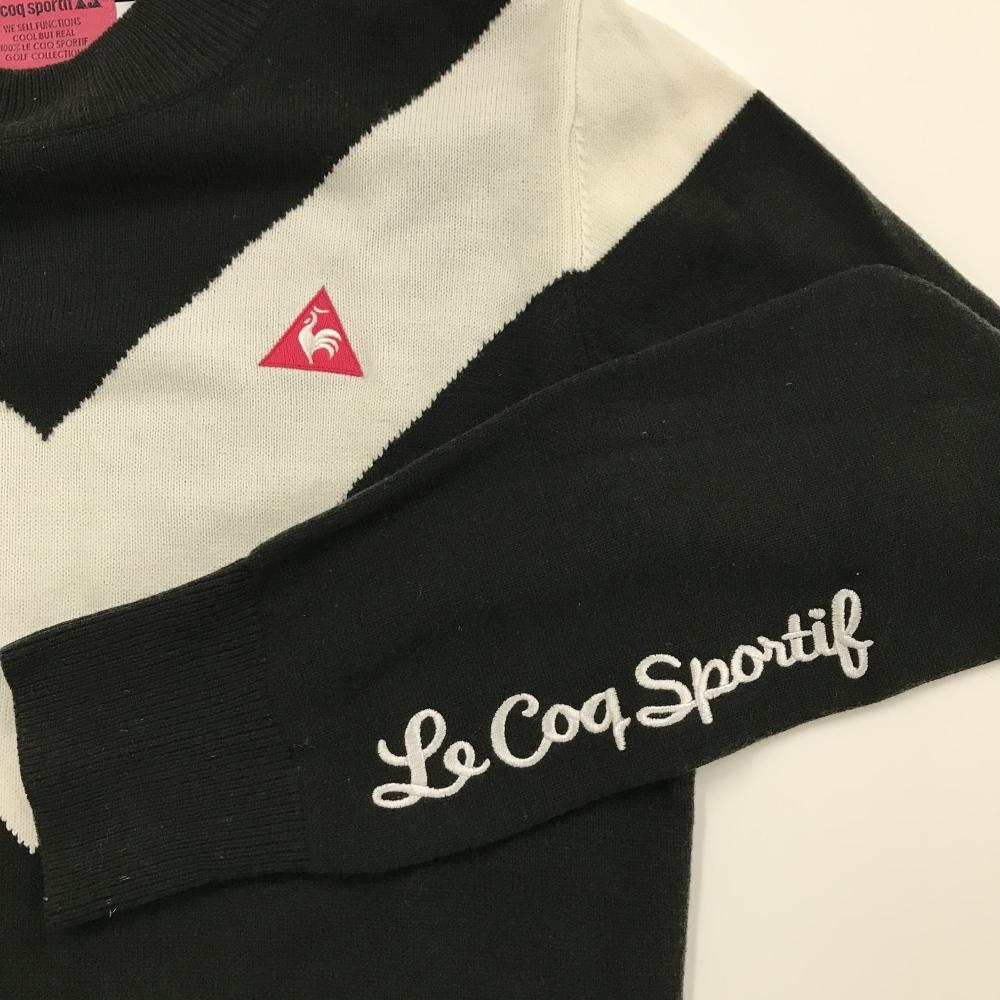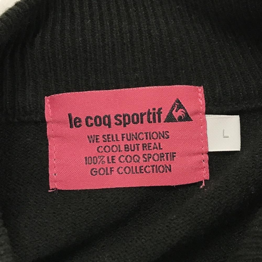 【超美品】ルコック ハイネックセーター 黒×白 ウール混 ニット レディース L ゴルフウェア le coq sportif