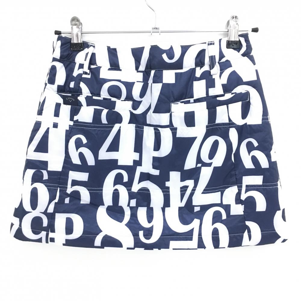 【美品】キャロウェイ 中綿スカート ネイビー×白 ナンバー総柄 レディース S ゴルフウェア Callaway