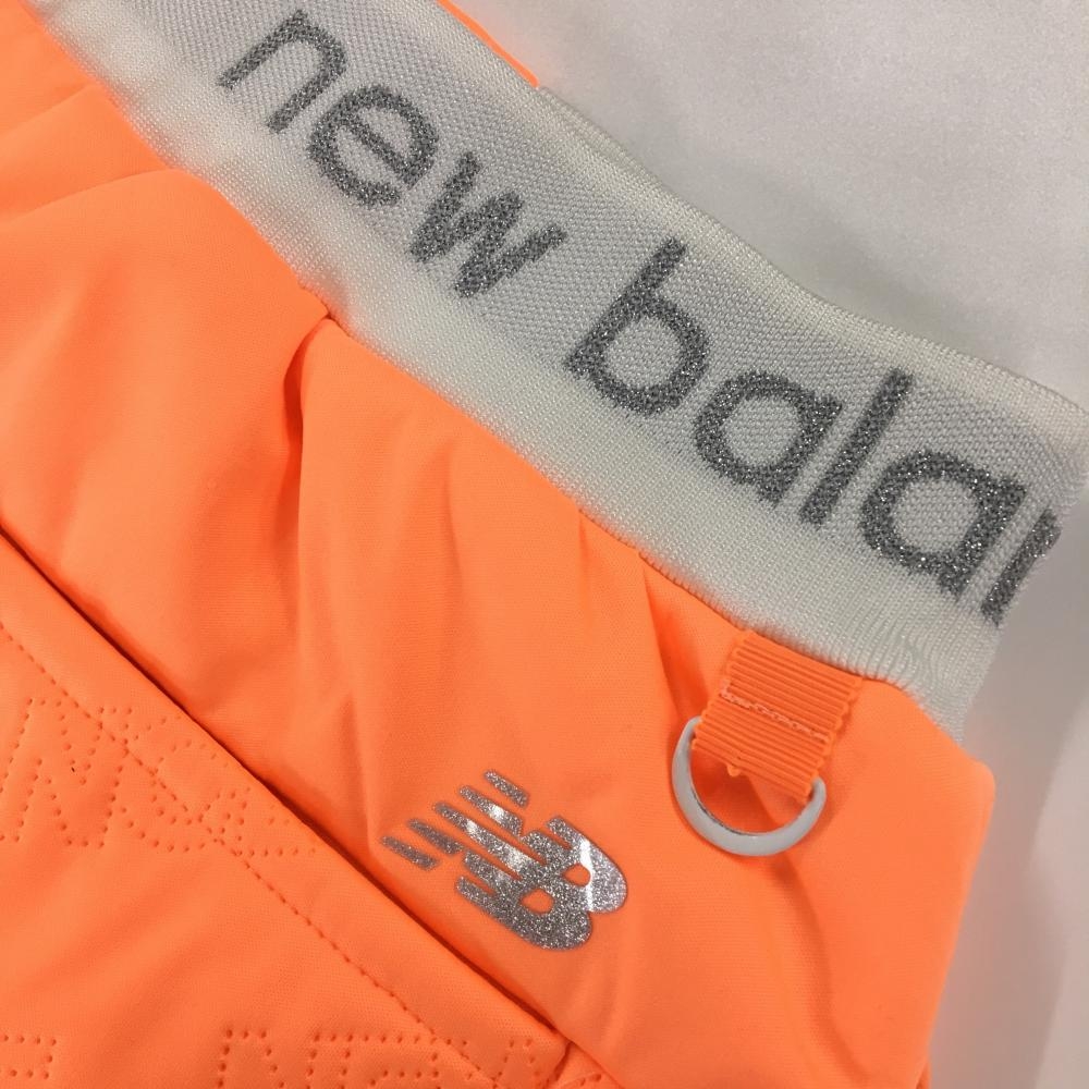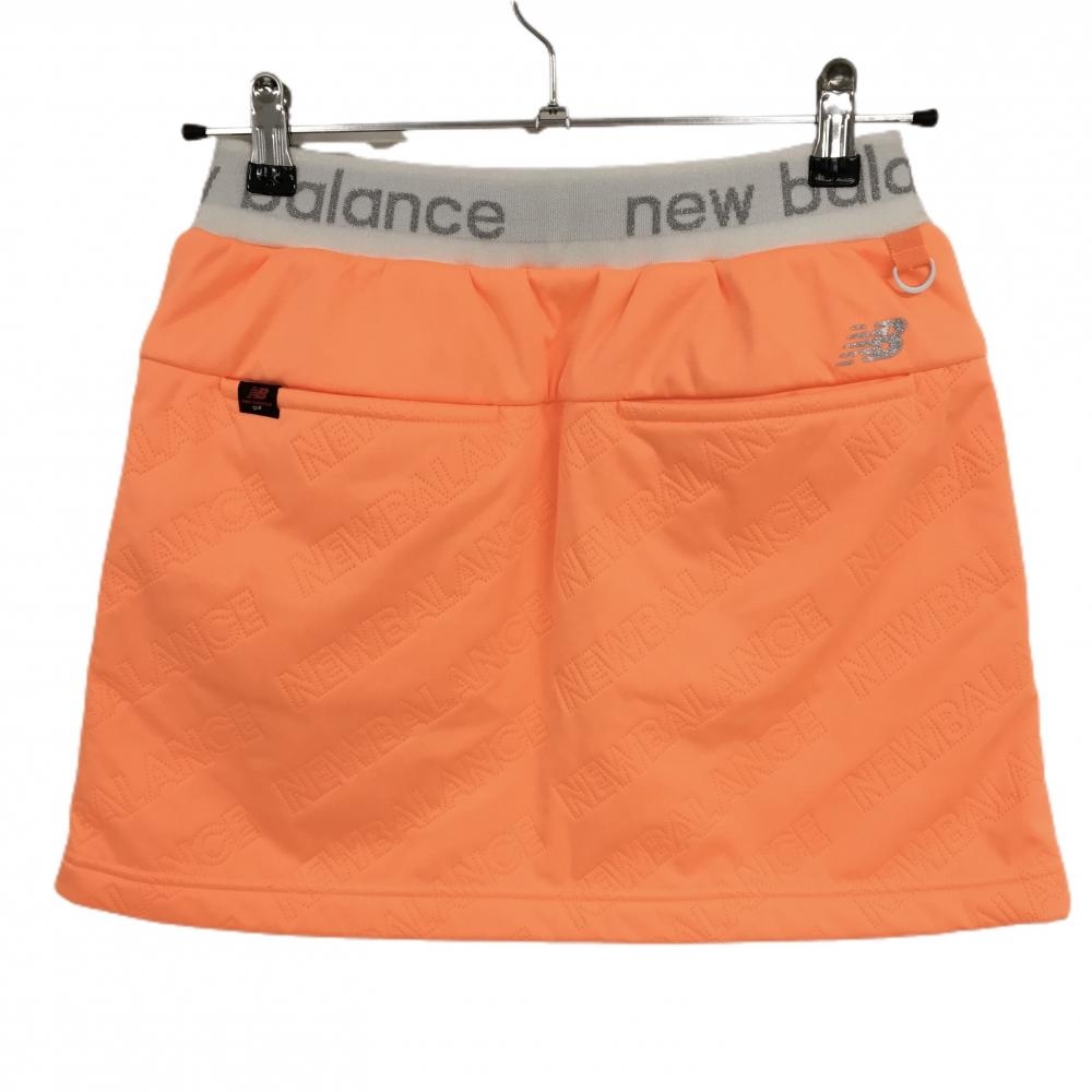 【超美品】ニューバランスゴルフ スカート 蛍光オレンジ 英字ロゴ総柄 裏起毛 ウエストゴム レディース 0(S) ゴルフウェア New Balance