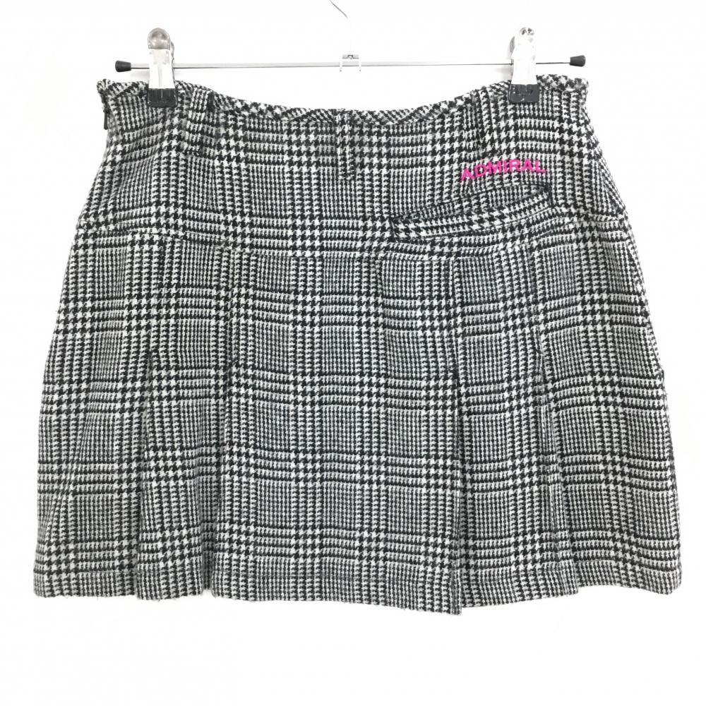 【美品】アドミラル スカート 黒×白 グレンチェック ウール混 レディース M ゴルフウェア Admiral