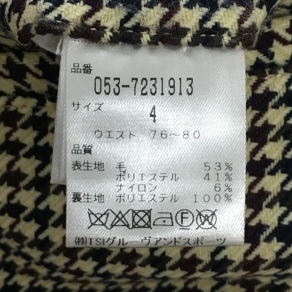 【超美品】パーリーゲイツ パンツ ライトベージュ×ボルドー 千鳥格子 ウール混 裏地付 メンズ 4(M) ゴルフウェア PEARLY GATES