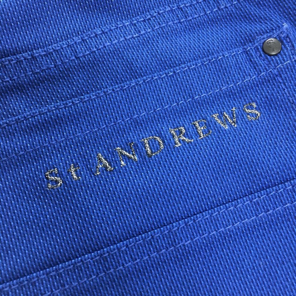 【美品】セントアンドリュース パンツ ブルー 織生地 ポケットロゴ刺しゅう メンズ M ゴルフウェア St ANDREWS