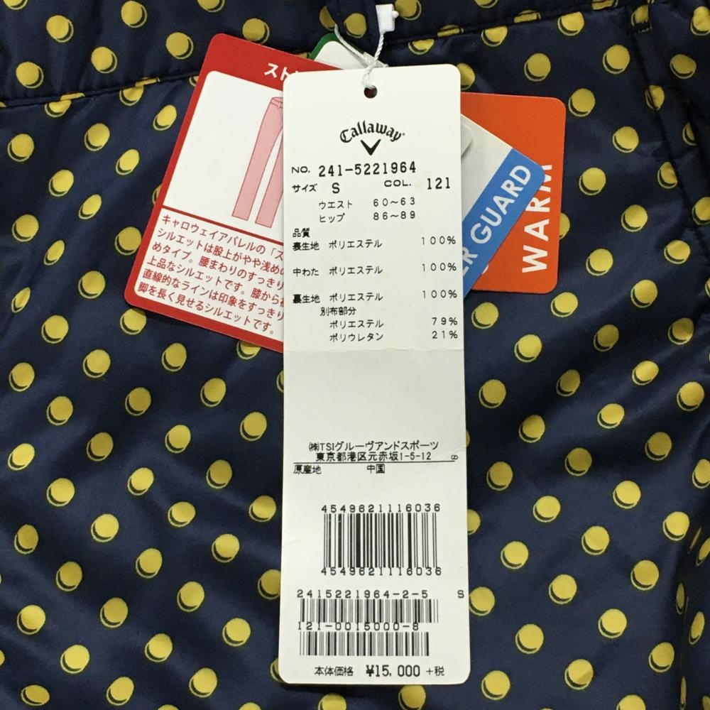 【新品】キャロウェイ 中綿パンツ ネイビー×イエロー ドット 撥水 防風 レディース S ゴルフウェア Callaway