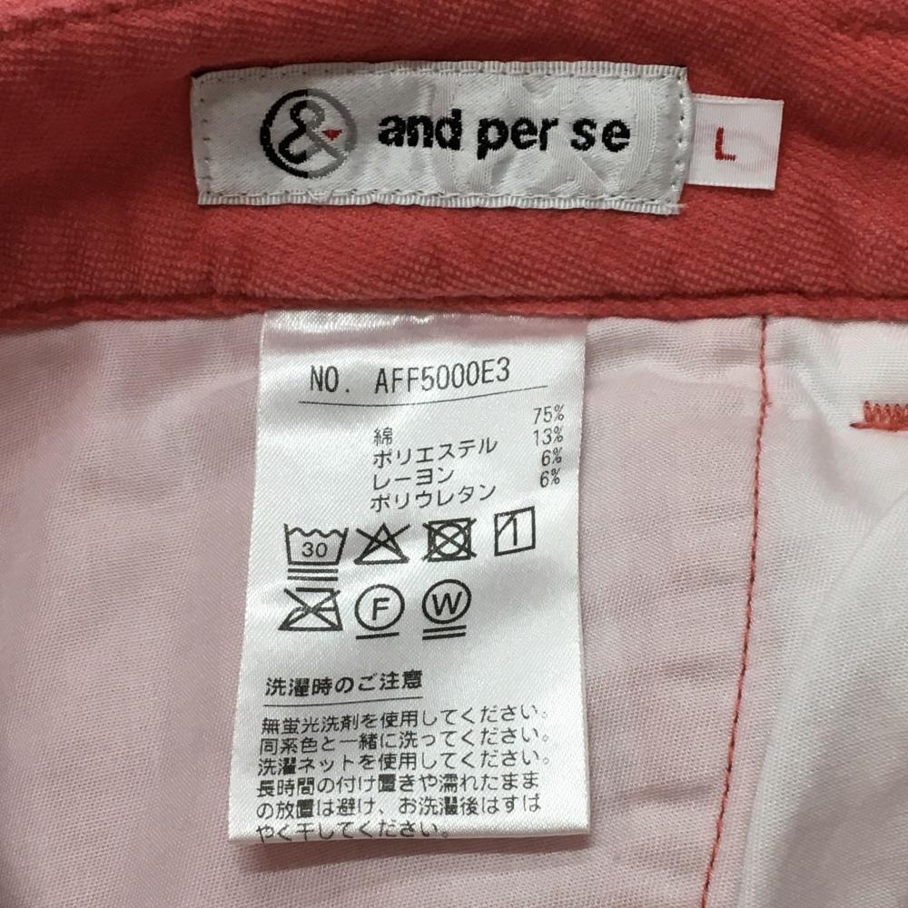 アンパスィ パンツ サーモンピンク 裏起毛 ストレッチ ロゴ刺しゅう レディース L ゴルフウェア and per se