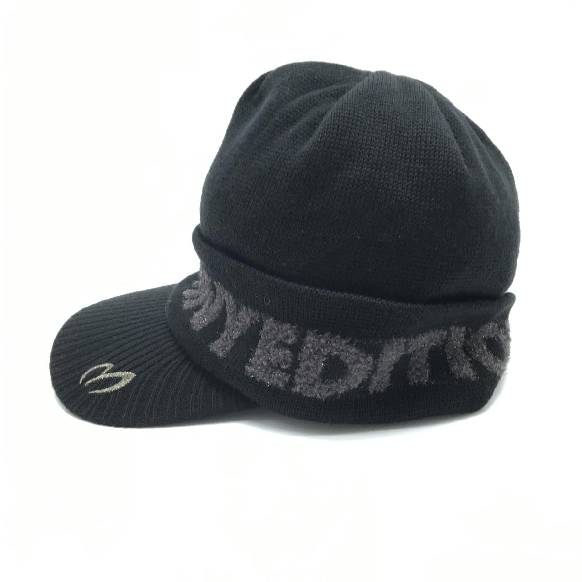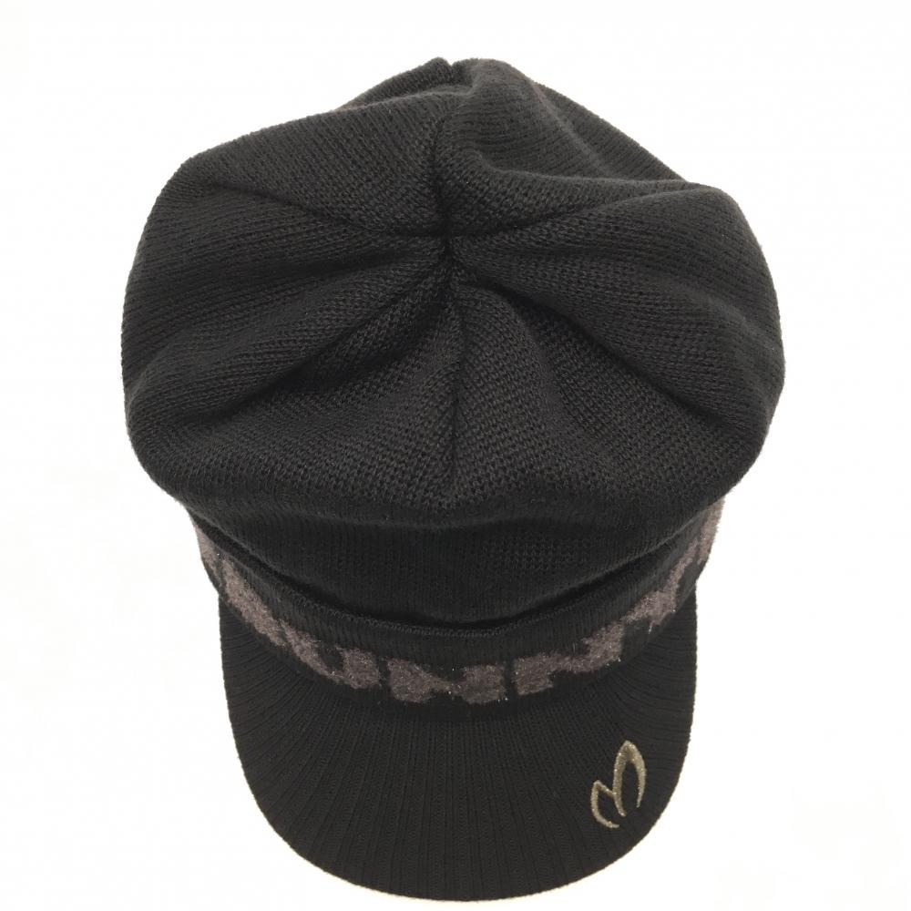 【新品】マスターバニー つば付ニット帽 黒×グレー ロゴラメ 内側起毛 FR ゴルフウェア MASTER BUNNY EDITION