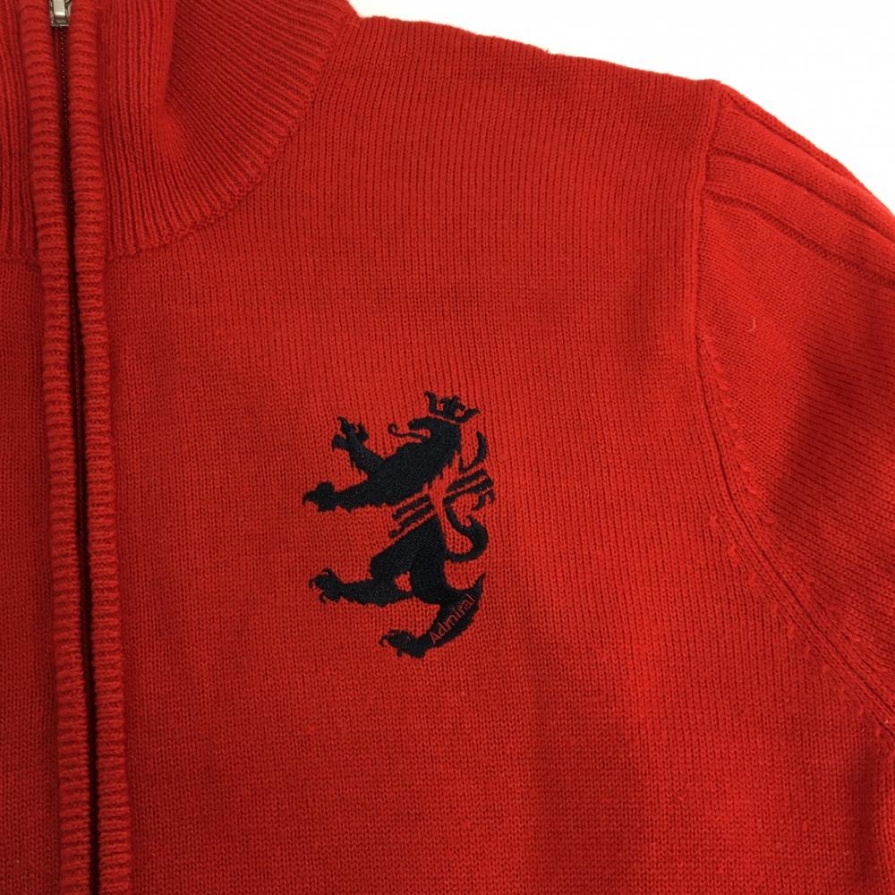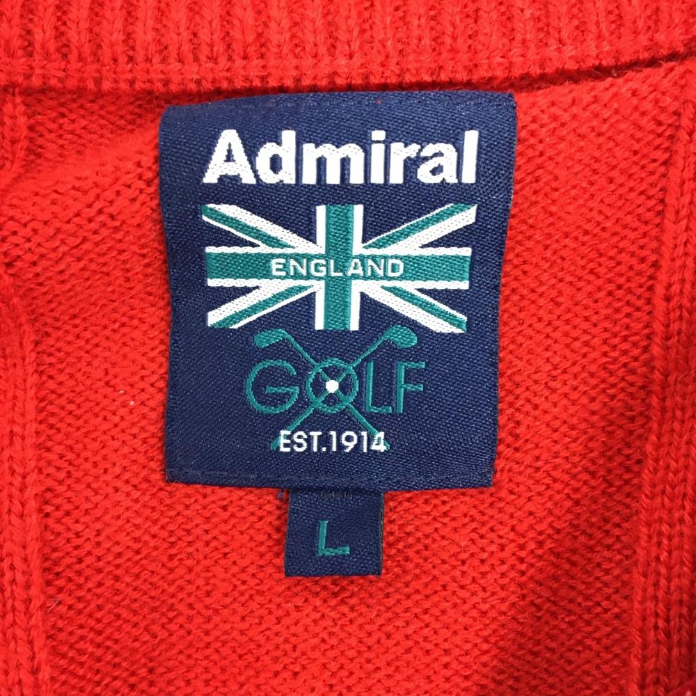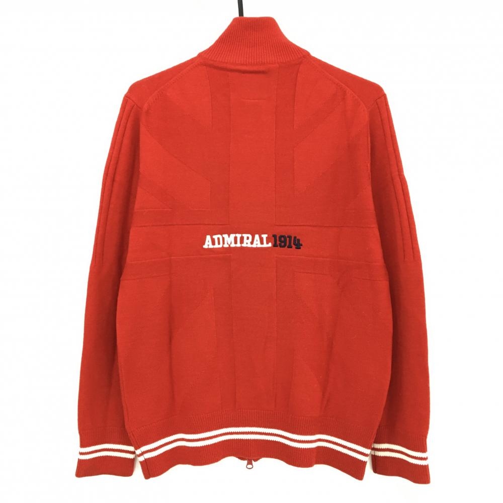 【美品】アドミラル ニットジャケット レッド ウール混 背面ユニオンジャック地模様 メンズ L ゴルフウェア Admiral