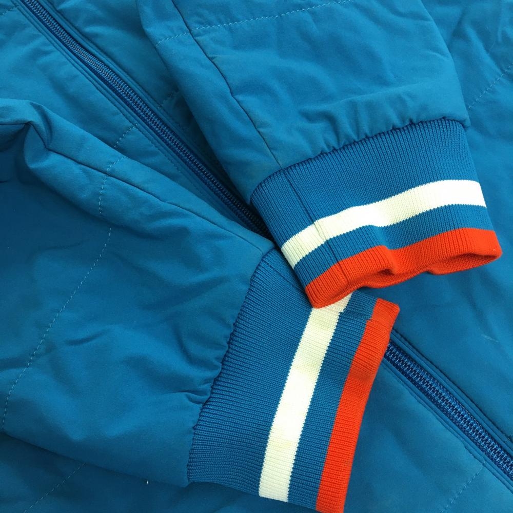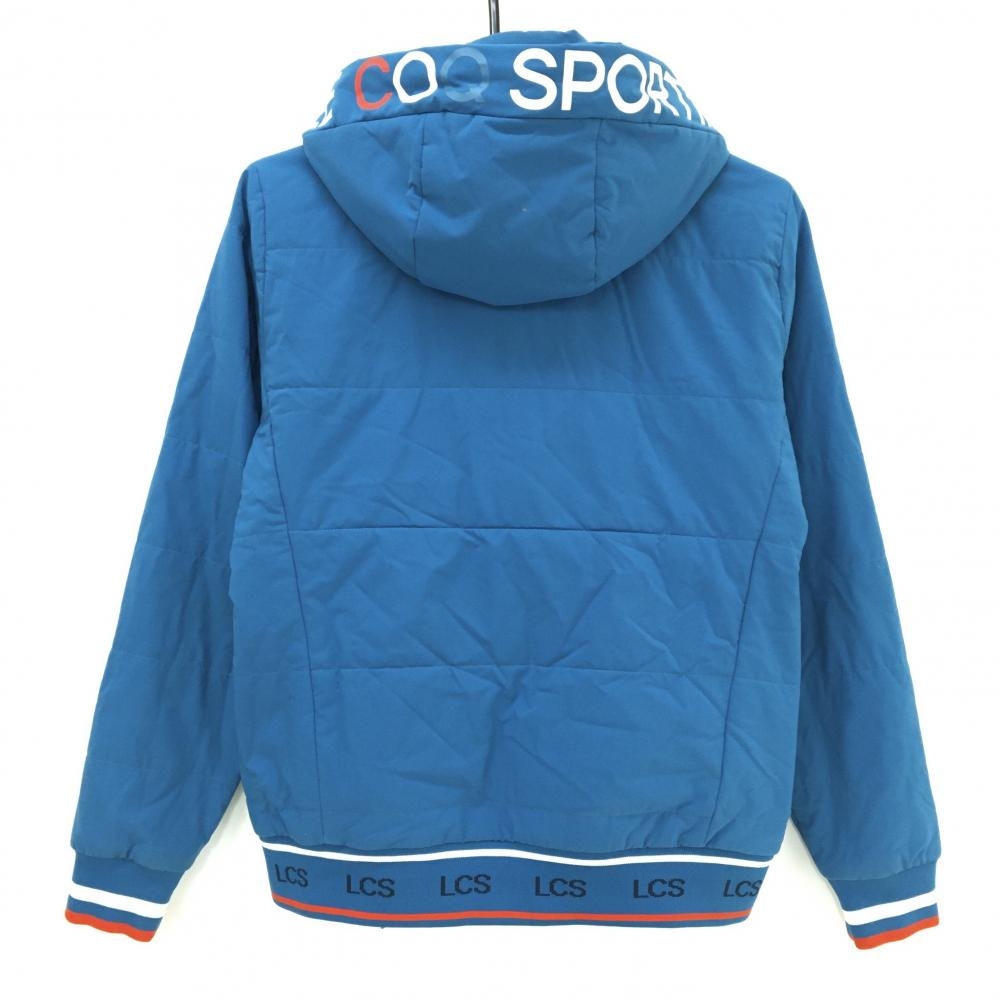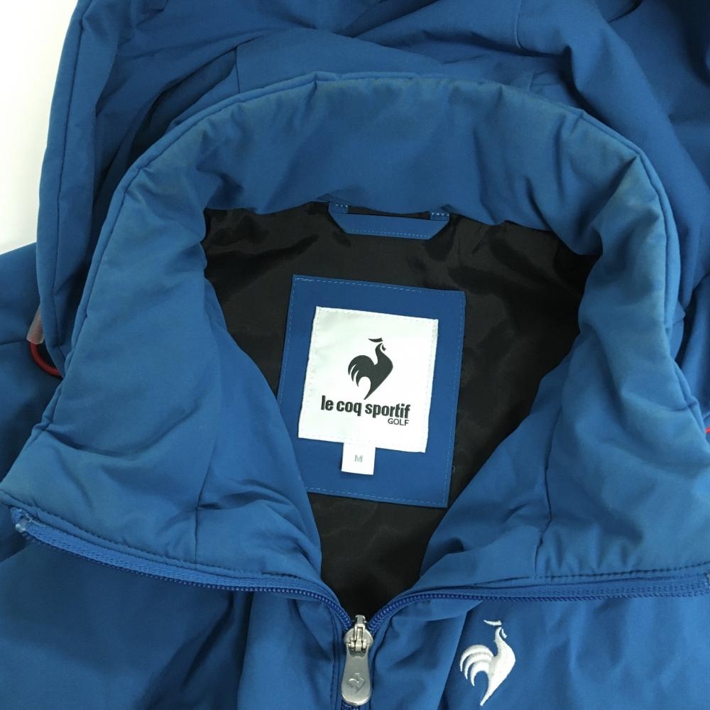 ルコックゴルフ フード付き中綿ジャケット ブルー系×白 フード取外し可 胸ロゴ メンズ M ゴルフウェア le coq sportif