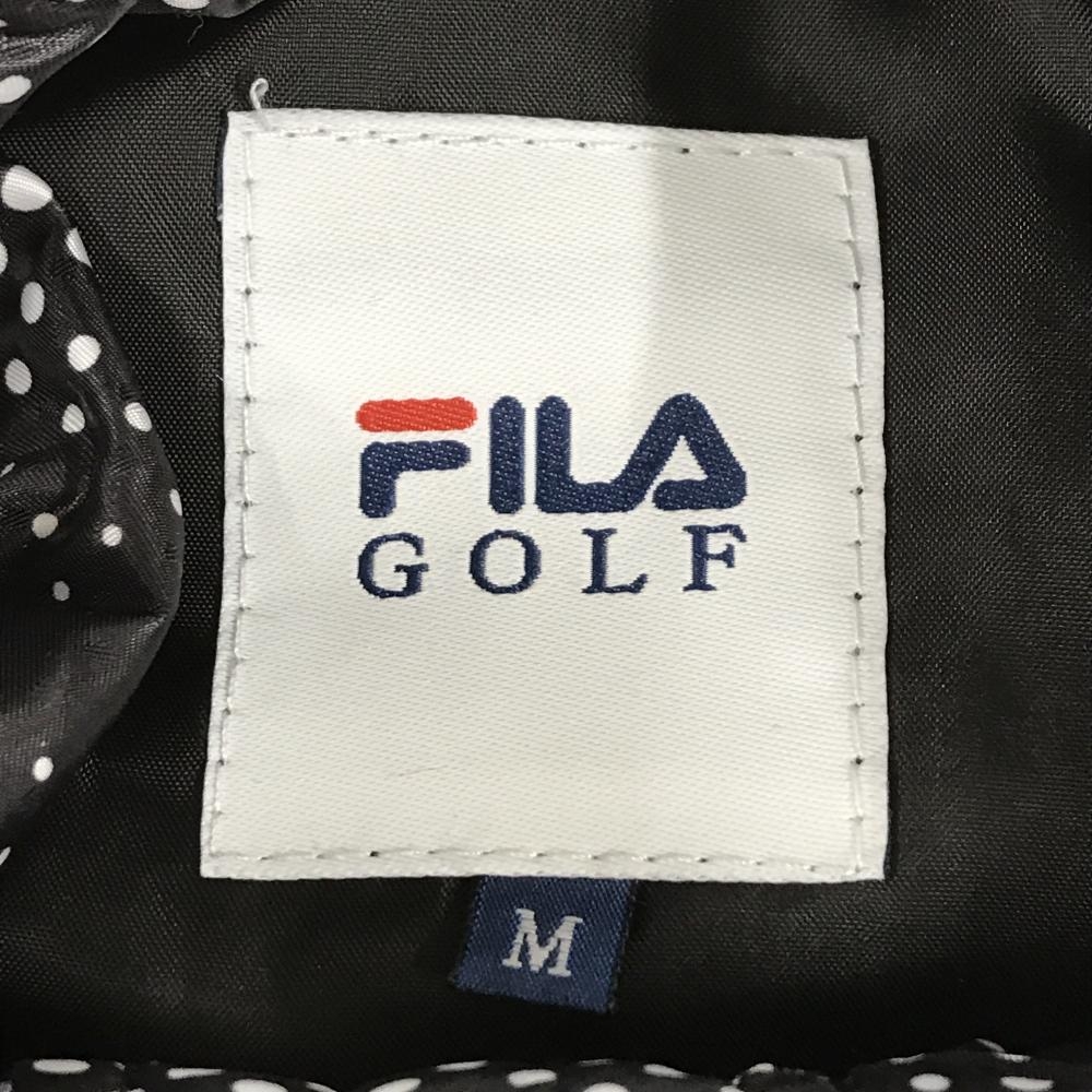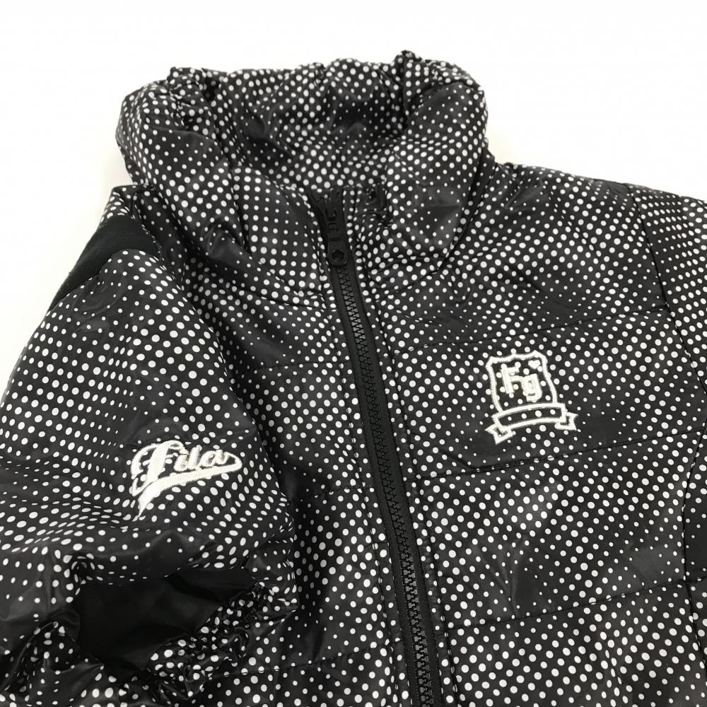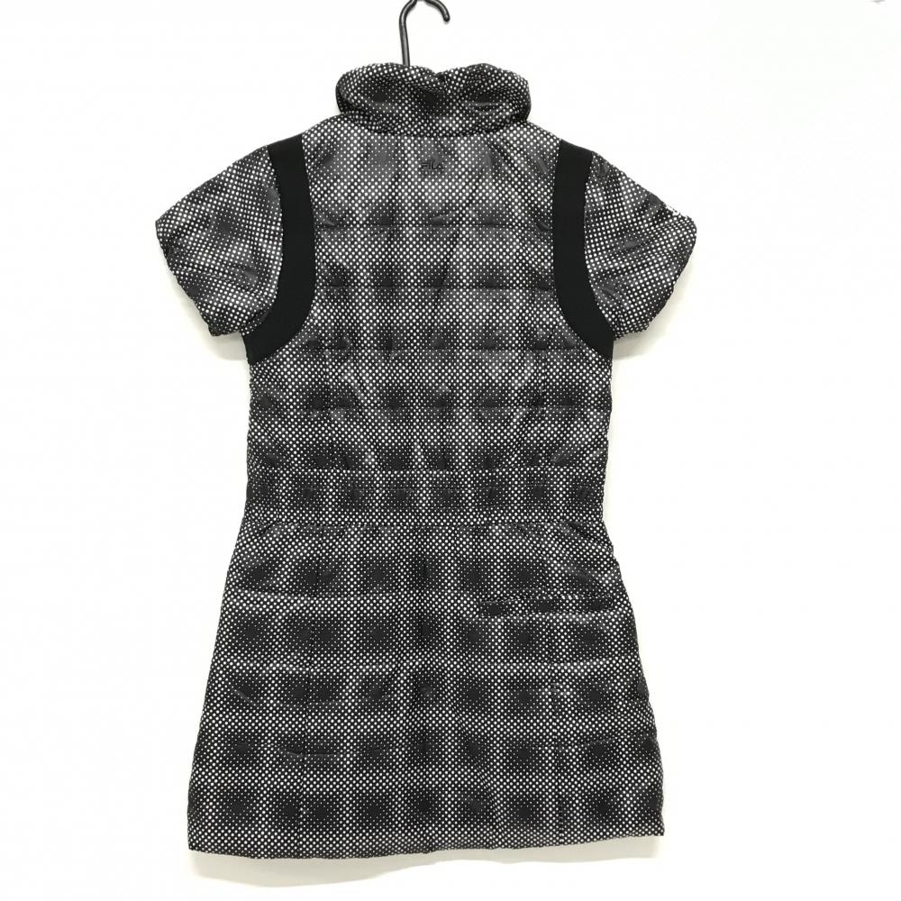 【超美品】フィラゴルフ 中綿半袖ワンピース 黒×白 ドット総柄 ダブルジップ レディース M ゴルフウェア FILA GOLF