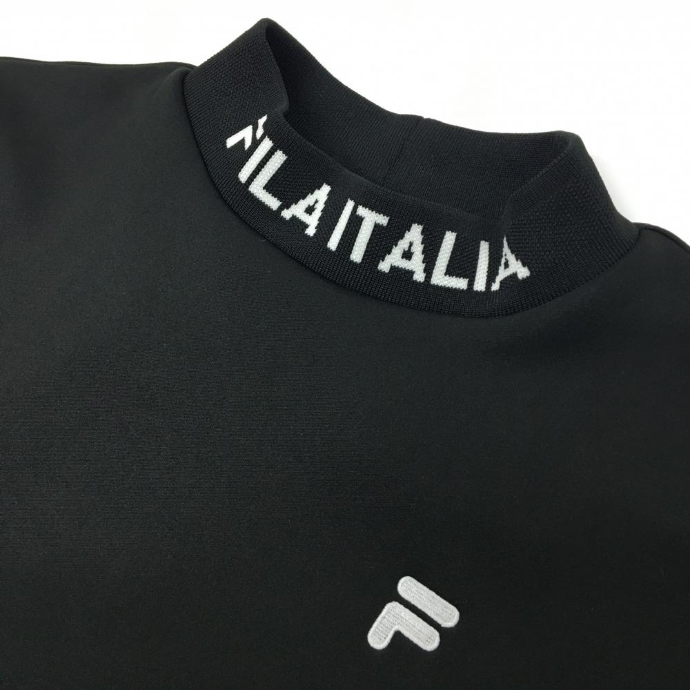【超美品】フィラゴルフ 長袖ハイネックシャツ 黒 裏起毛 ネックロゴ ロゴ白 レディース M ゴルフウェア FILA GOLF
