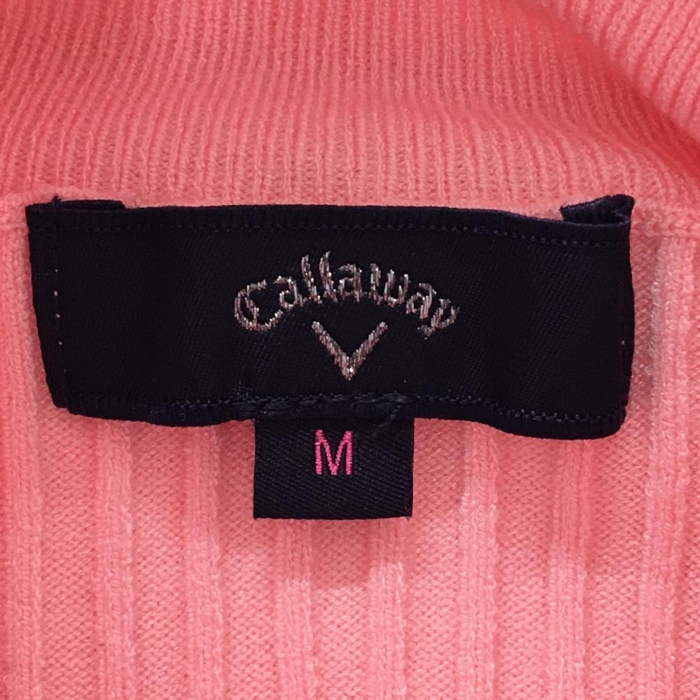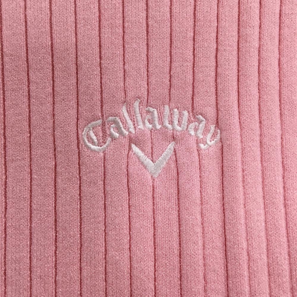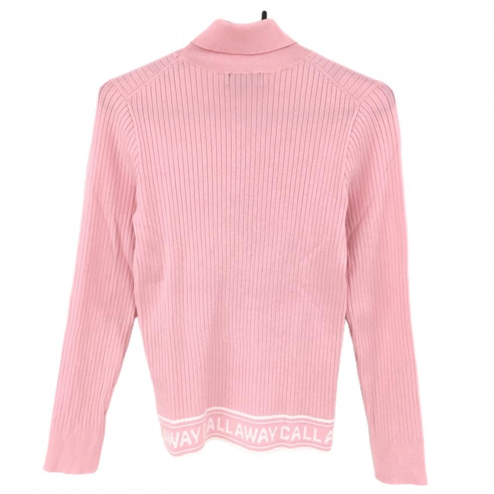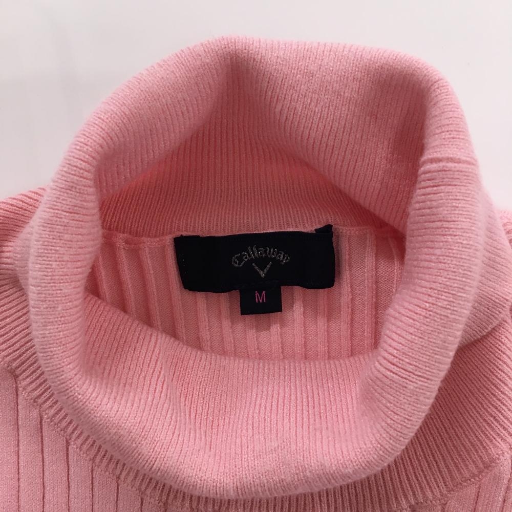 【美品】キャロウェイ タートルネックセーター ピンク×白 ストライプ編み ニット レディース M ゴルフウェア 2024年モデル Callaway