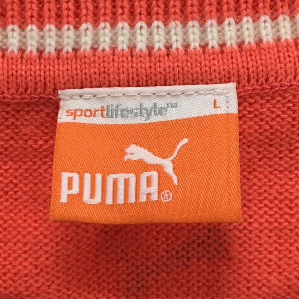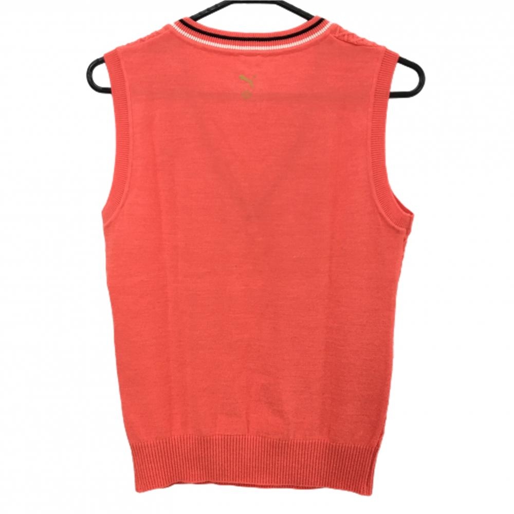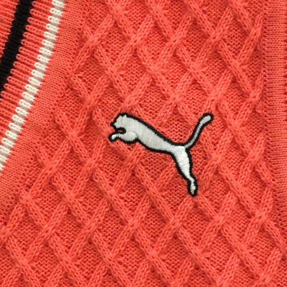 【超美品】プーマ ニットベスト サーモンオレンジ 前面ダイヤ柄編み ウール混 レディース L ゴルフウェア PUMA