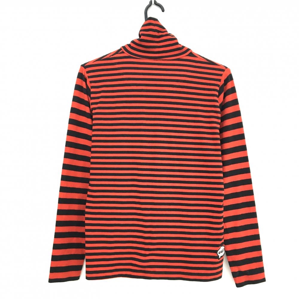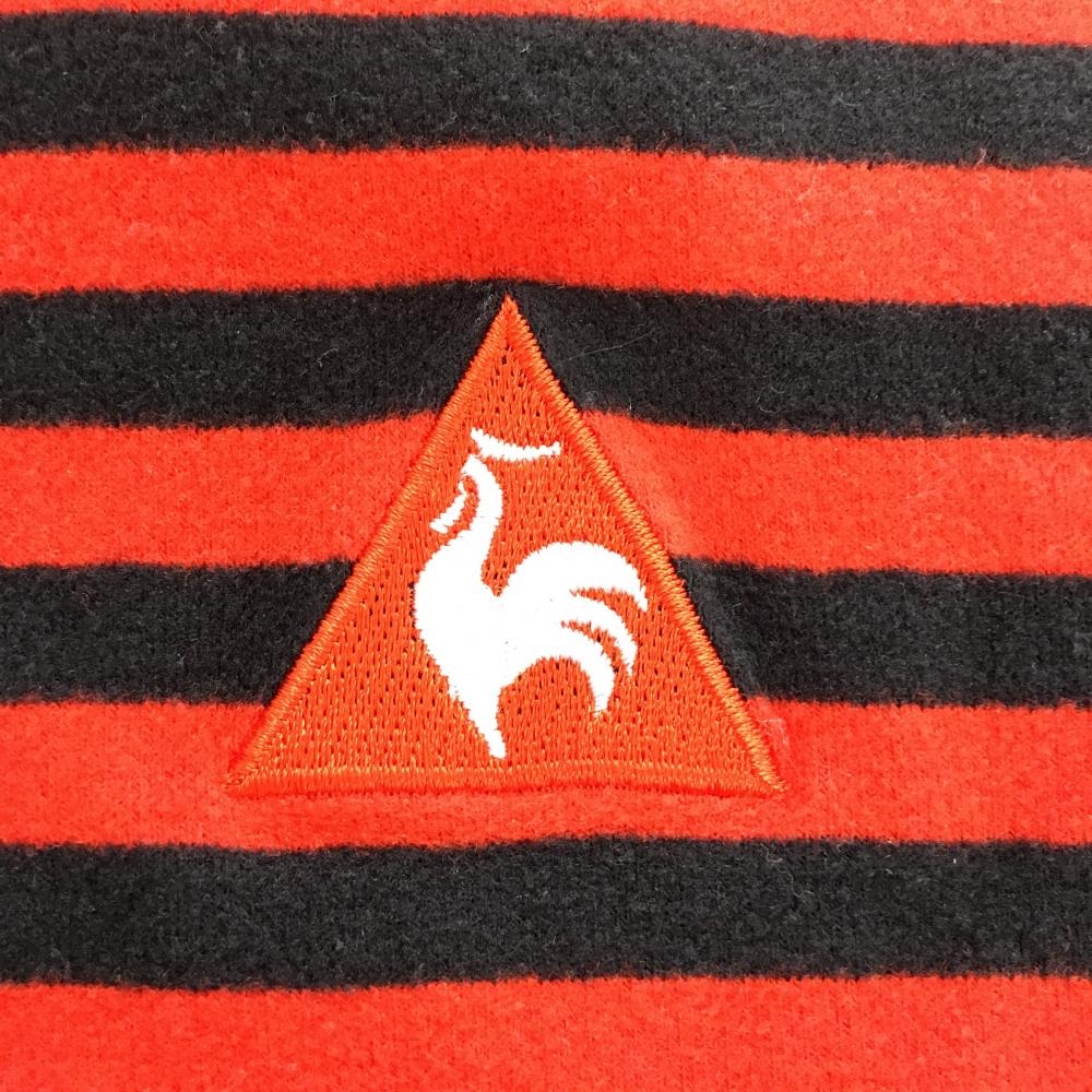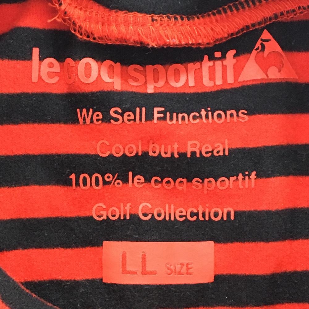 【美品】ルコックゴルフ 長袖ハイネックシャツ レッド×黒 ボーダー 微起毛 レディース LL ゴルフウェア le coq sportif