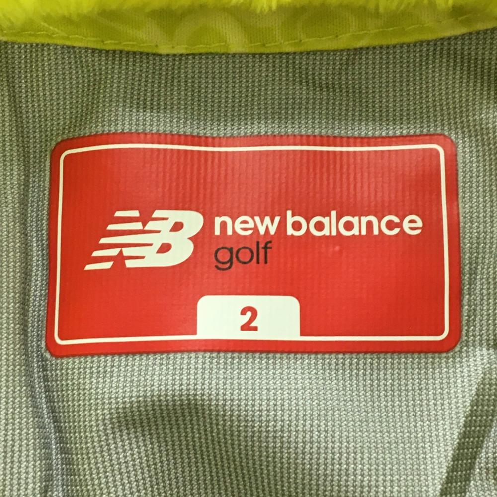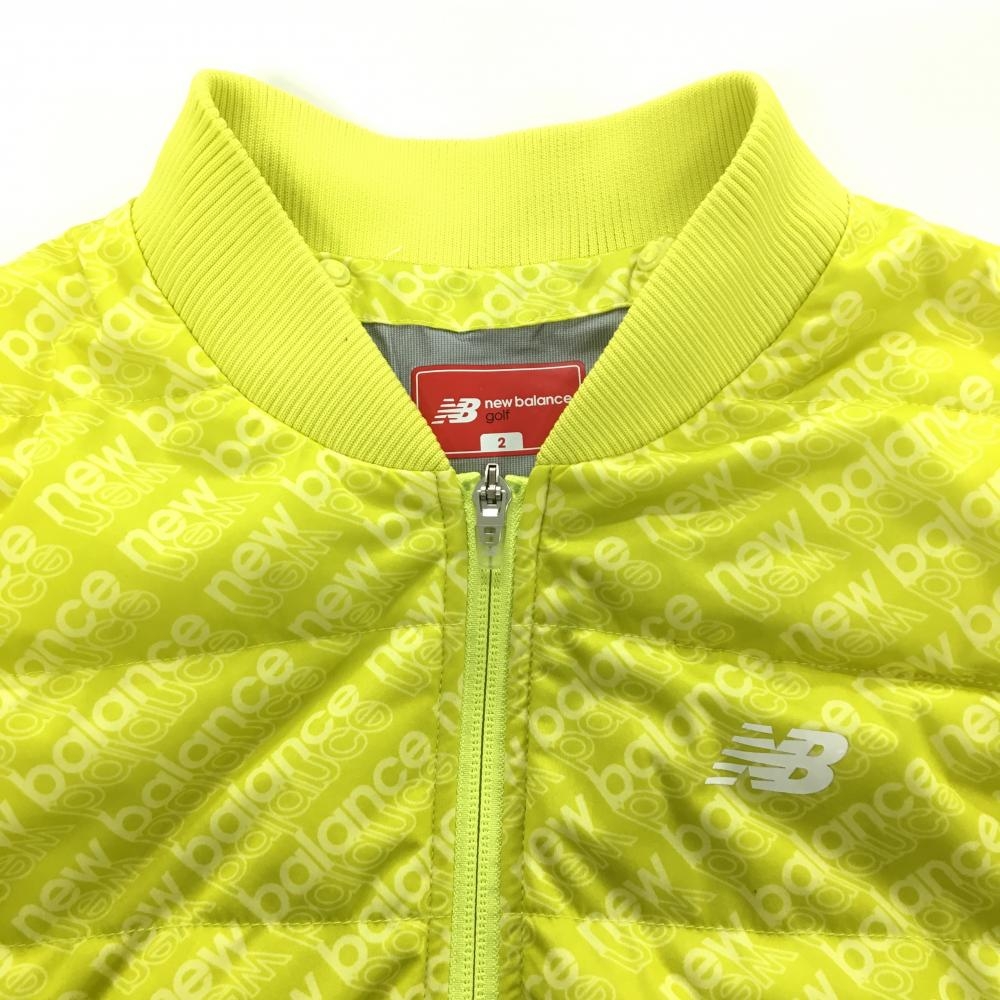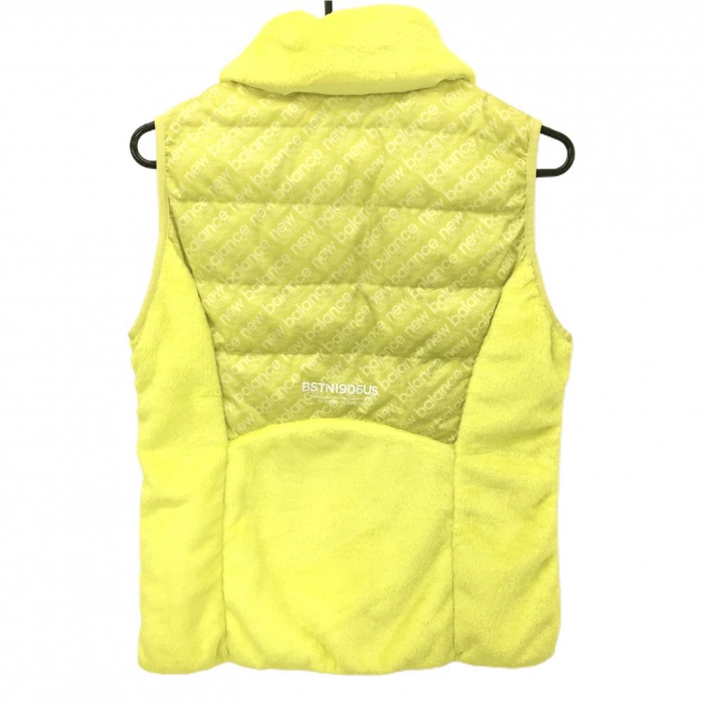 【超美品】ニューバランスゴルフ 襟付き中綿ベスト グリーンイエロー ロゴ柄 一部ボア 襟着脱可 レディース 2(L) ゴルフウェア New Balance