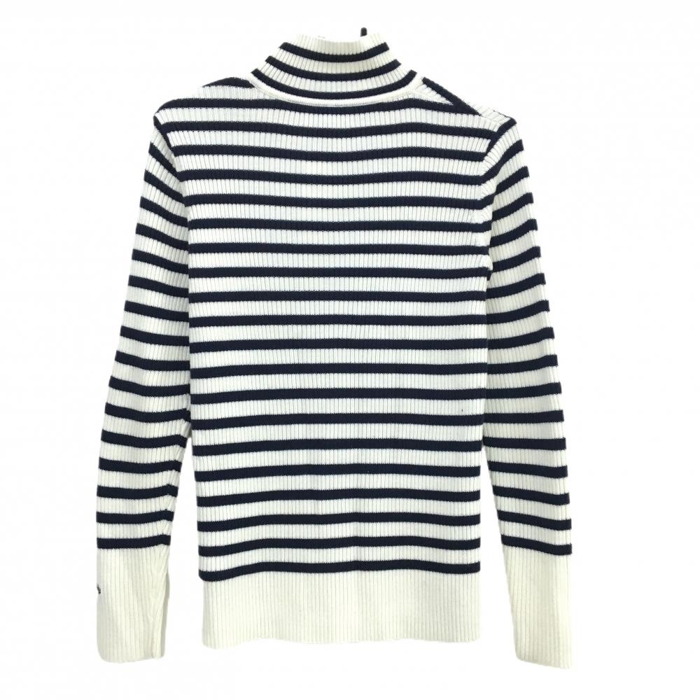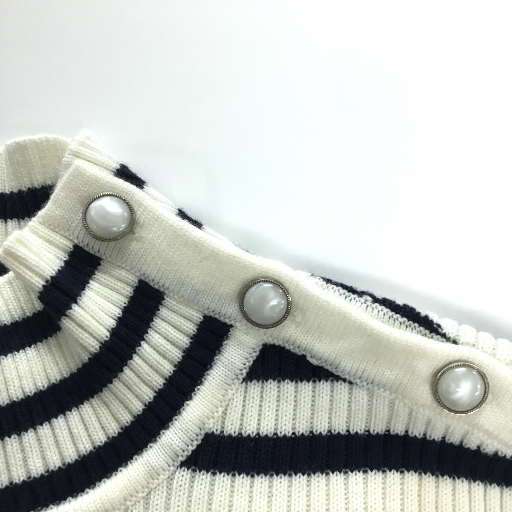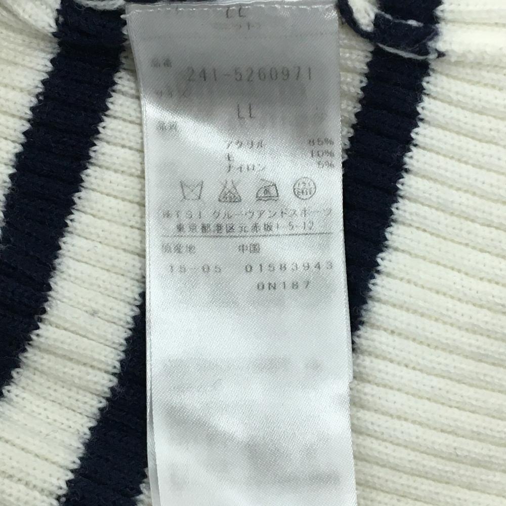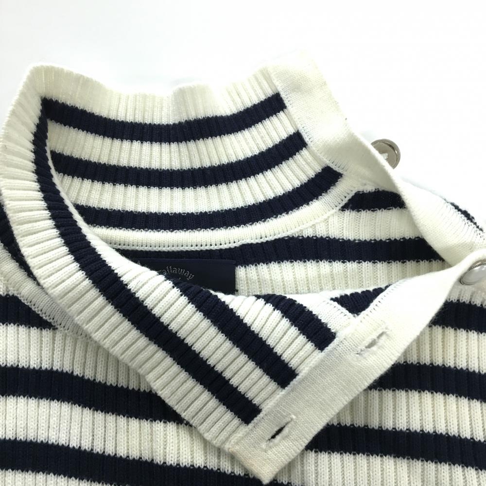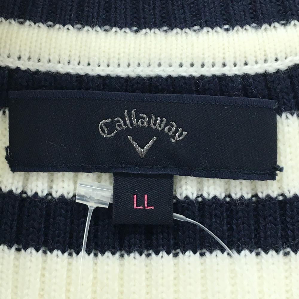キャロウェイ ハイネックセーター 白×ネイビー ボーダー ニット ウール混 レディース LL ゴルフウェア Callaway