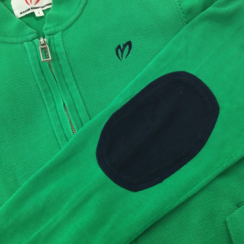 マスターバニー ニットジャケット グリーン コットン100% エルボーパッチ レディース 1(M) ゴルフウェア MASTER BUNNY EDITION