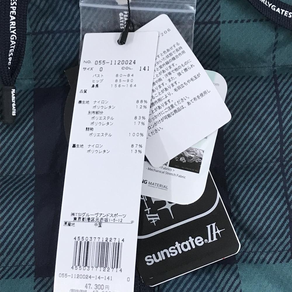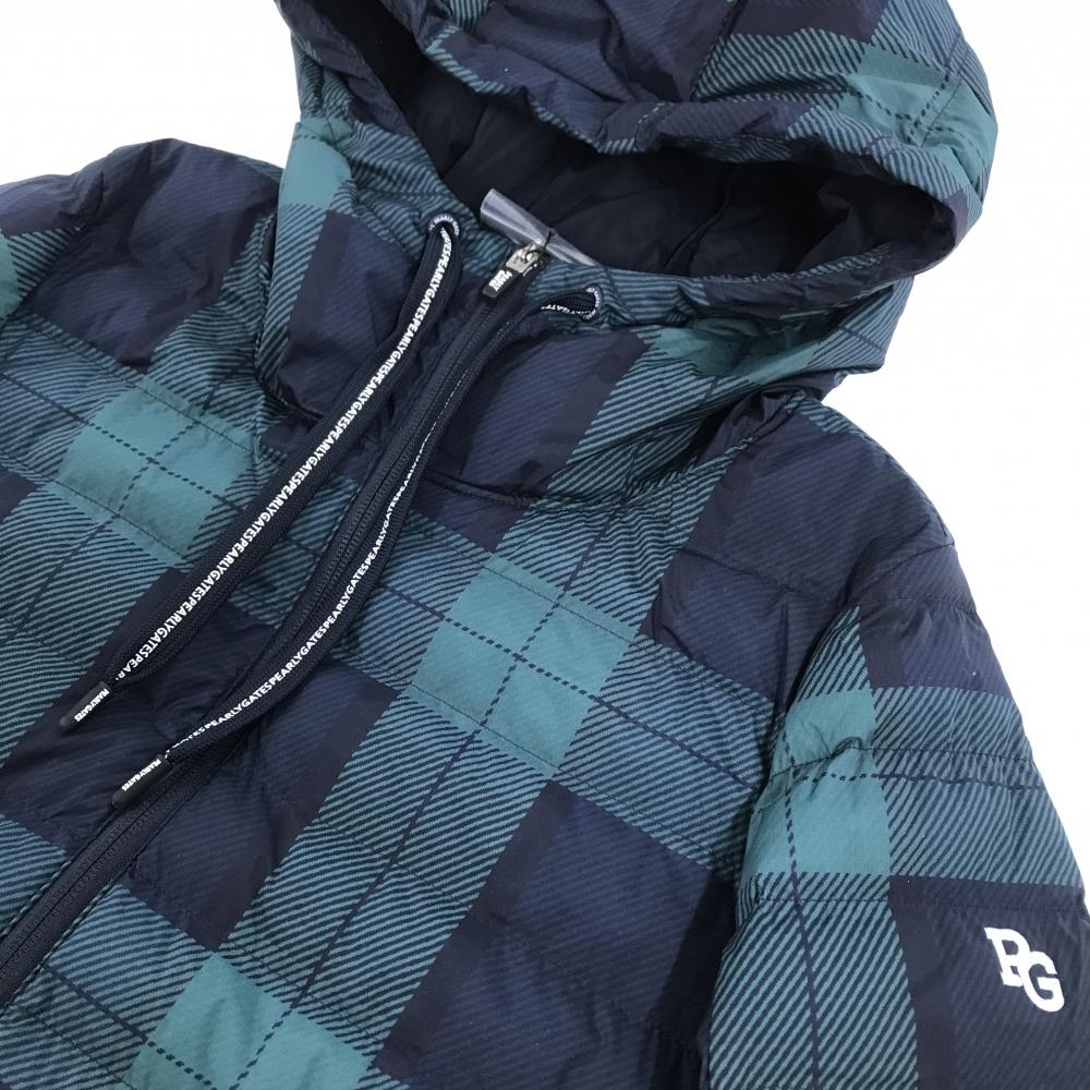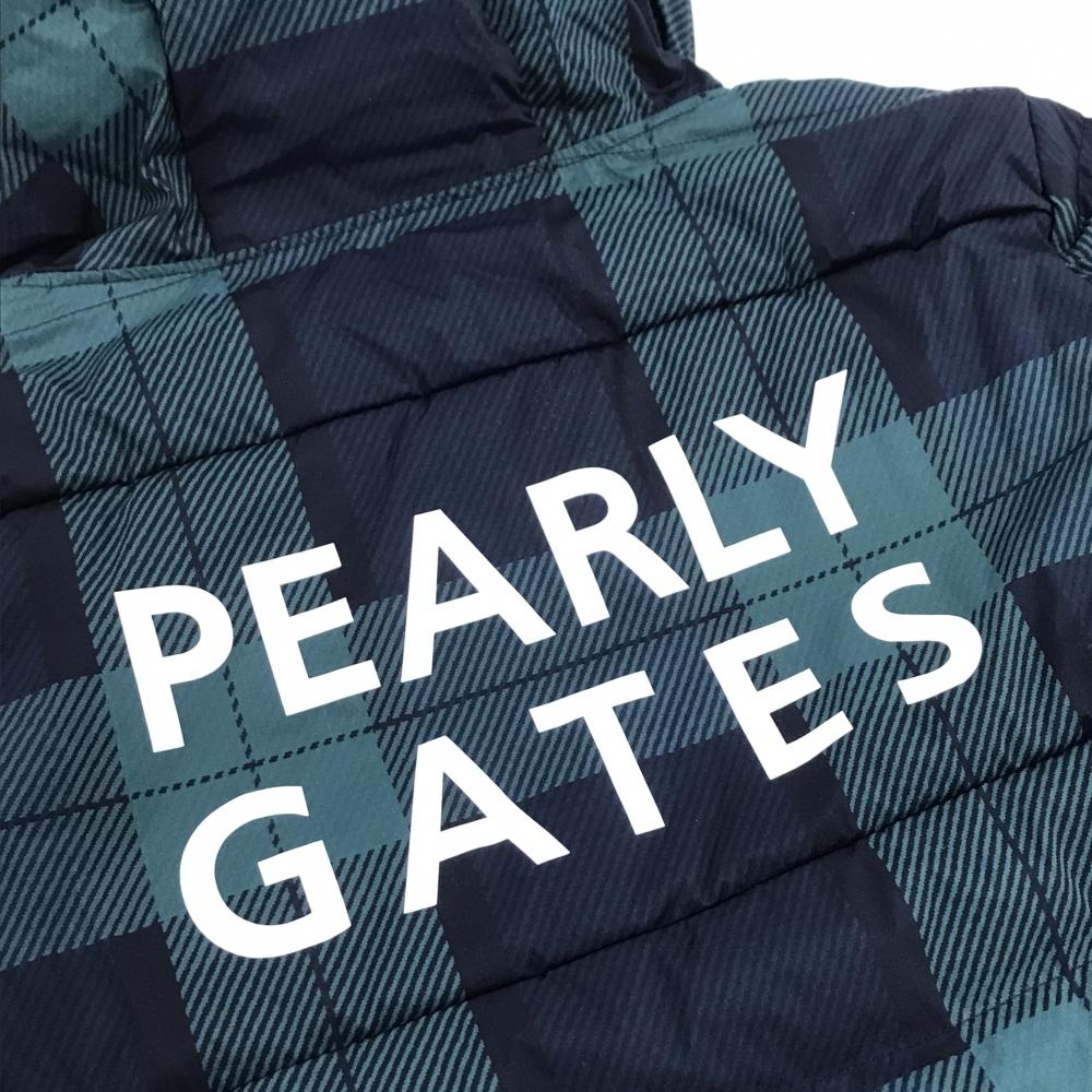 【新品】パーリーゲイツ フード付中綿ジャケット グリーン×ネイビー チェック レディース 0(S) ゴルフウェア PEARLY GATES