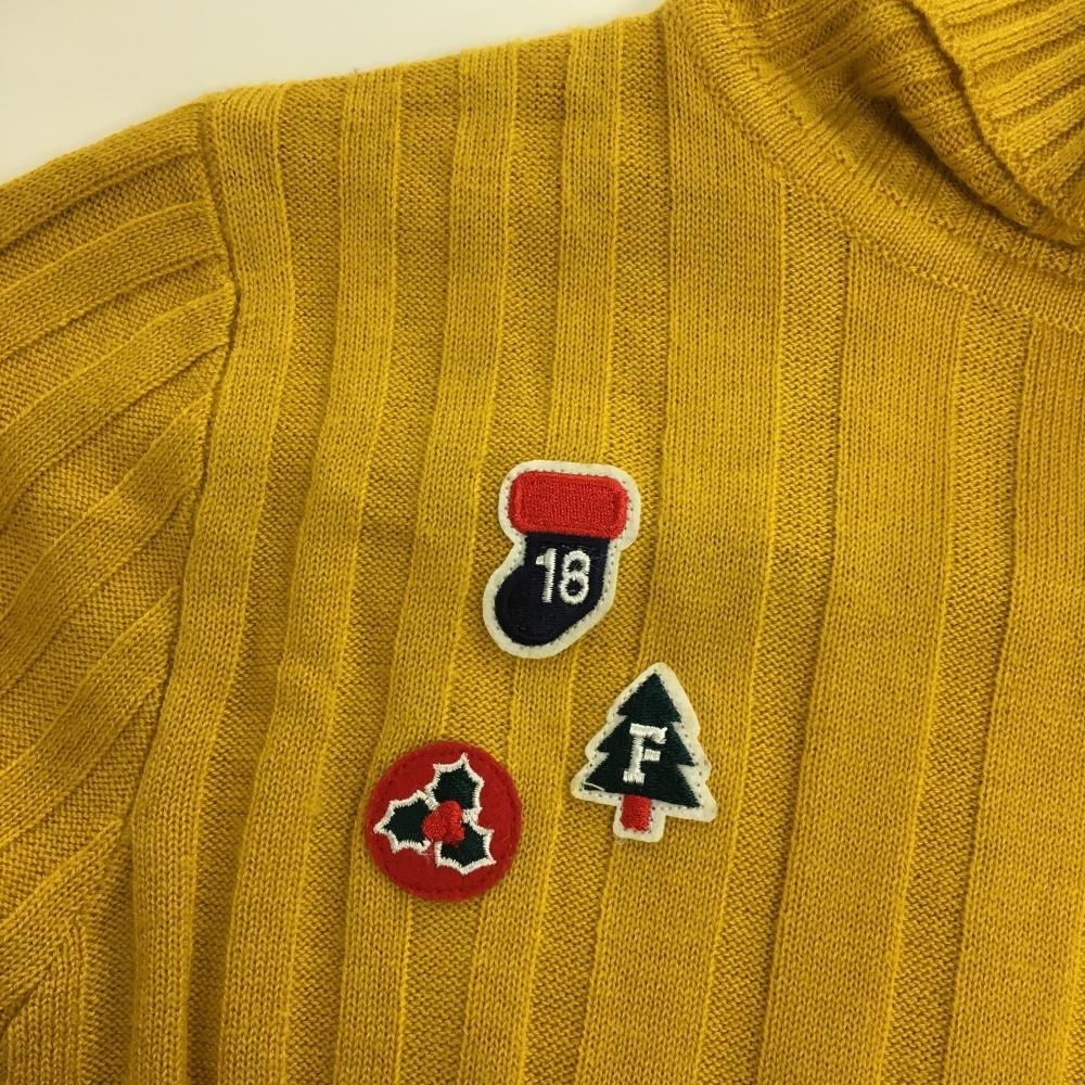 【美品】フィラゴルフ タートルネックセーター イエロー系 ロゴネイビー クリスマスワッペン レディース L ゴルフウェア FILA GOLF