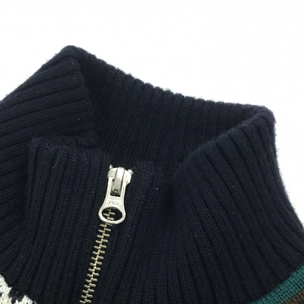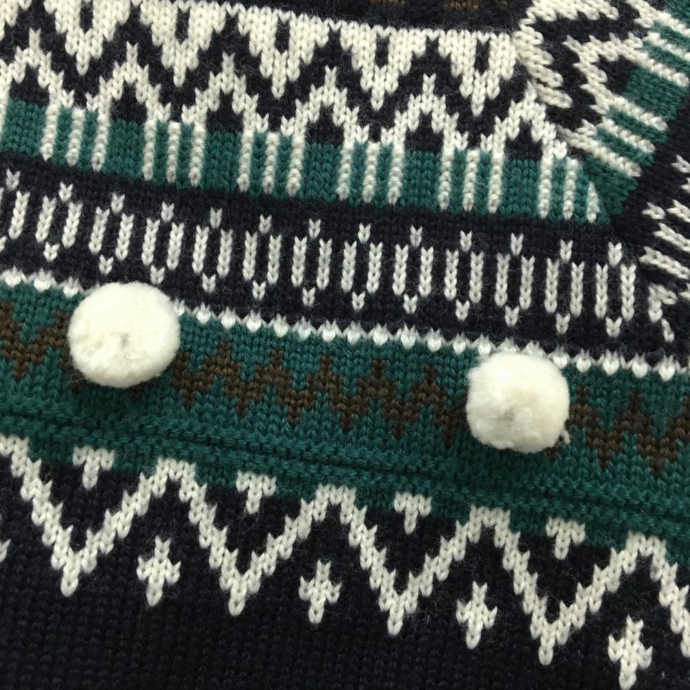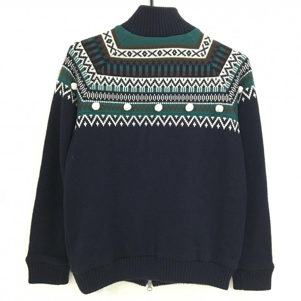 マスターバニー ニットジャケット ダークネイビー×白×グリーン系 裏地付き レディース 1(M) ゴルフウェア MASTER BUNNY EDITION