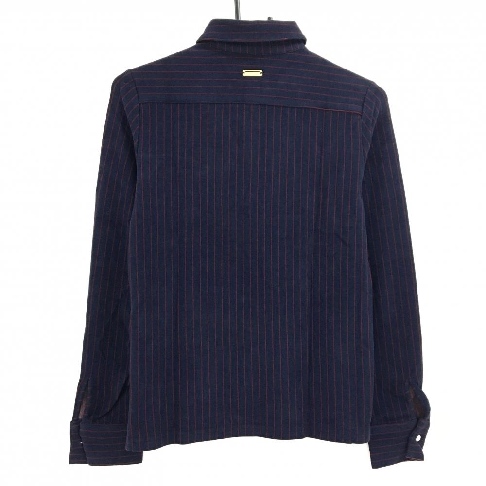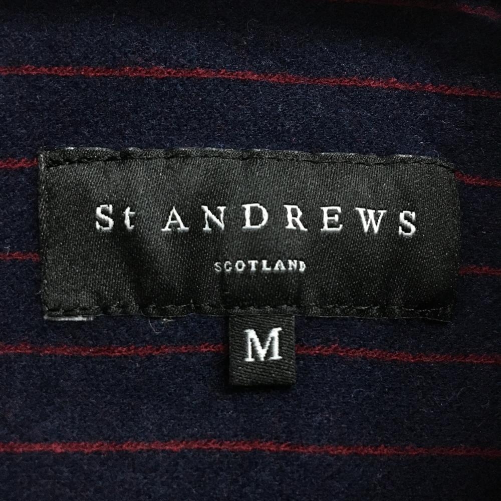 【美品】セントアンドリュース 長袖ポロシャツ ネイビー××ボルドー ストライプ 起毛素材 レディース M ゴルフウェア St ANDREWS
