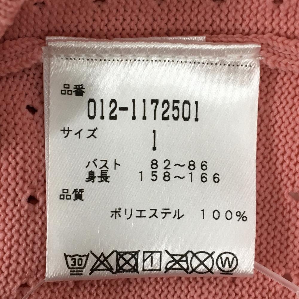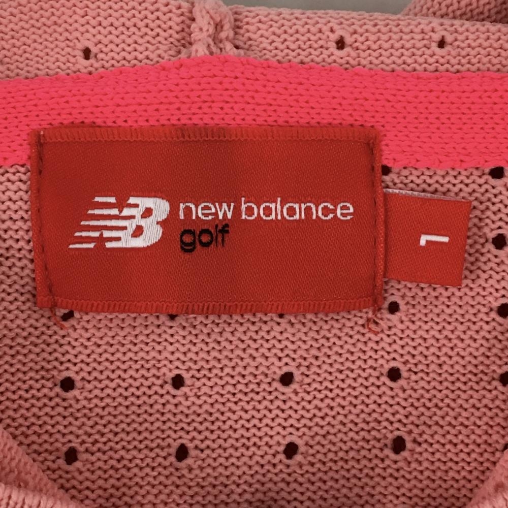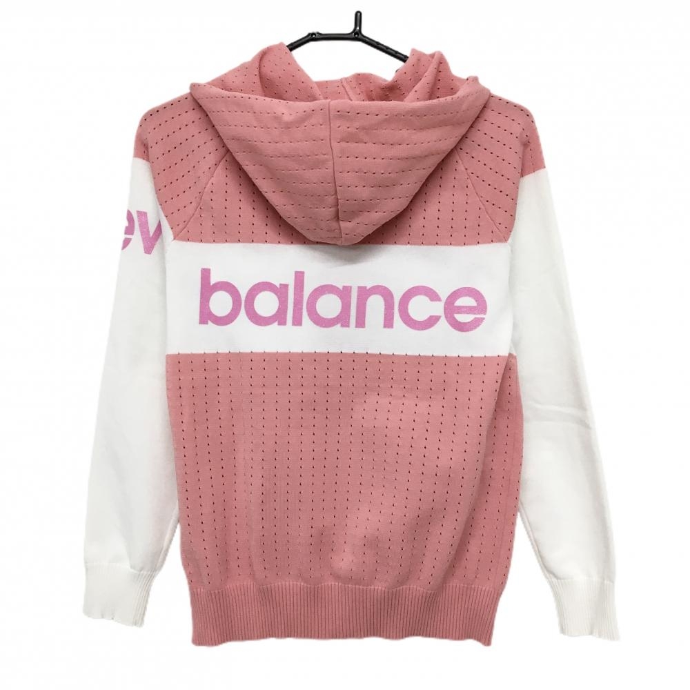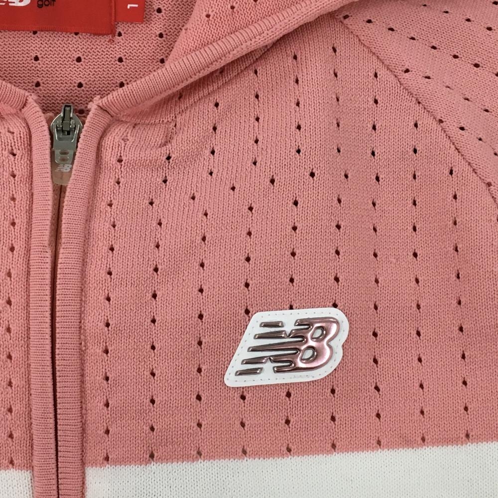 【超美品】ニューバランスゴルフ ニットジップパーカー ピンク×白 透かし編み ロゴラメ レディース 1(M) ゴルフウェア New Balance