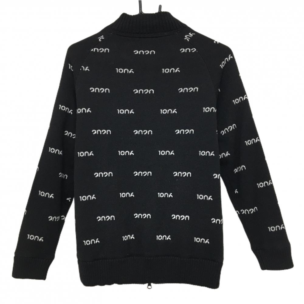 【美品】ニューバランスゴルフ ニットジャケット 黒×白 総柄 ウール混 裏地付 レディース 1(M) ゴルフウェア New Balance