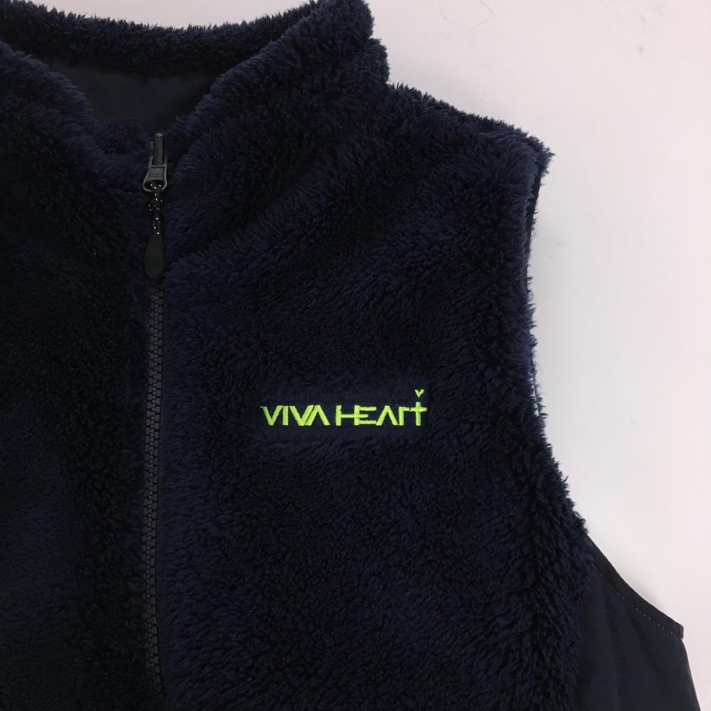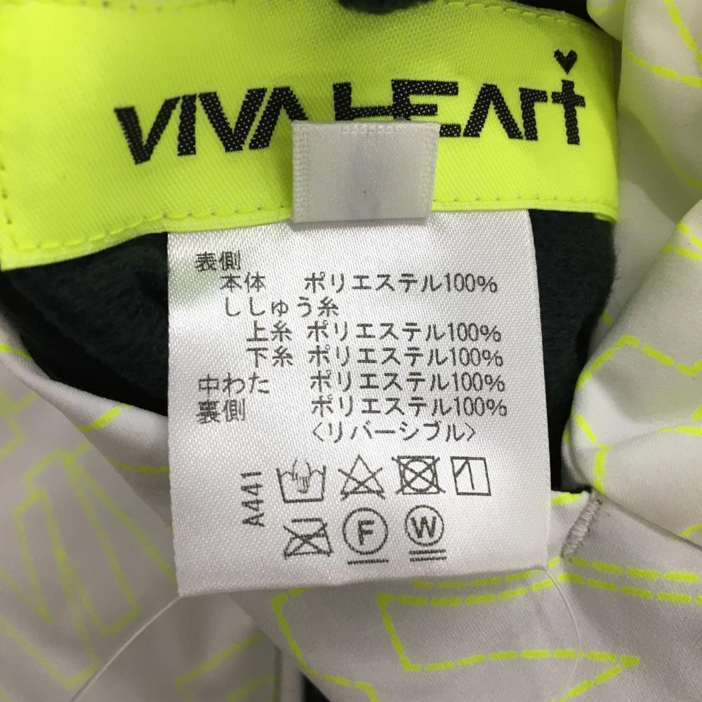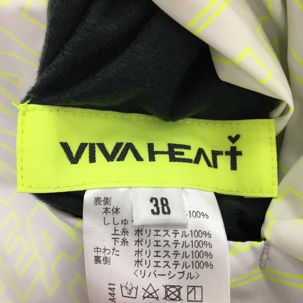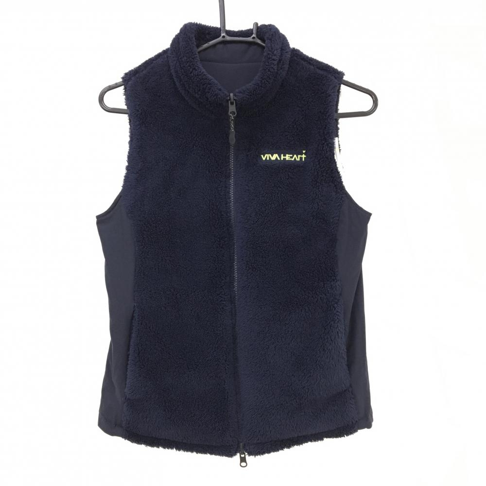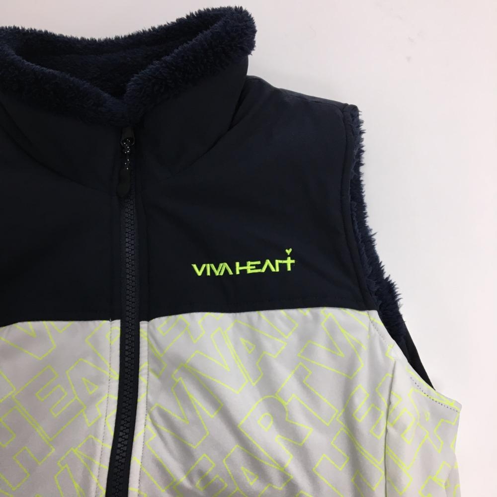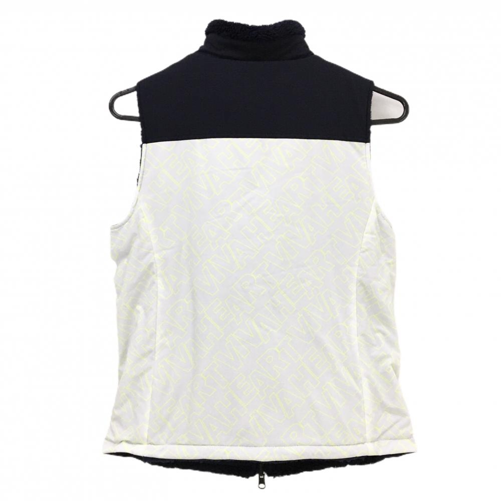 【未使用品】ビバハート リバーシブル中綿ベスト 白×蛍光イエロー×ネイビー 一部英字ロゴ柄 レディース 38(S) ゴルフウェア VIVA HEART