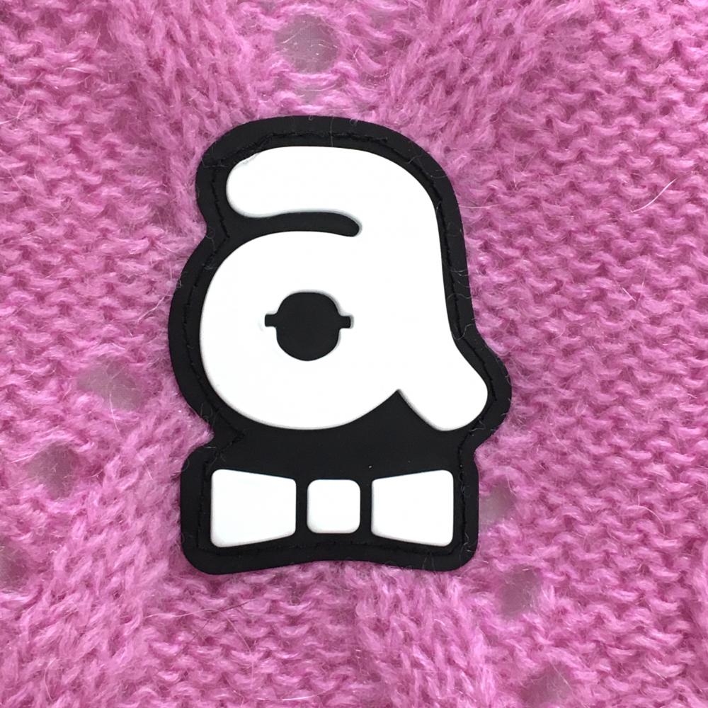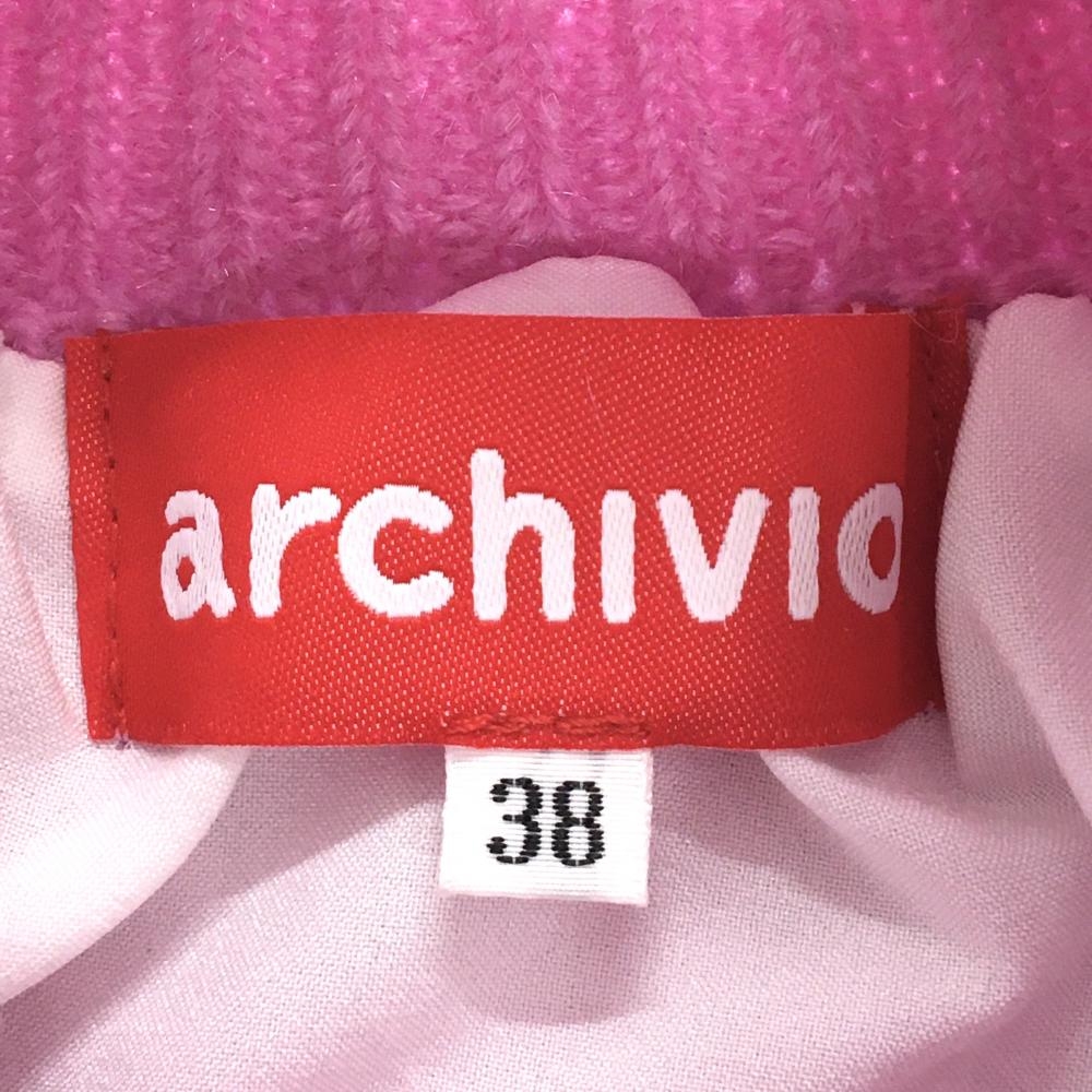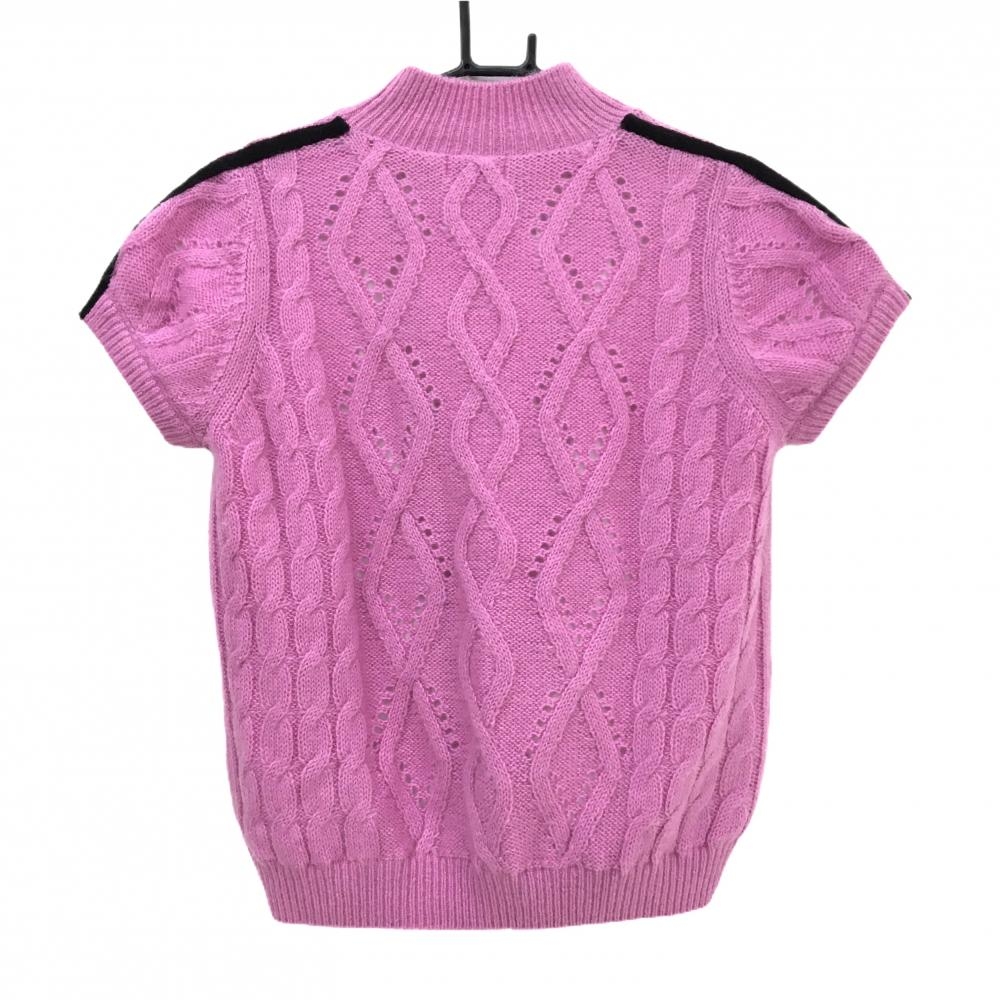 アルチビオ 半袖ハイネックセーター ピンク×白 肩ライン ケーブル編み モヘヤ混 ニット レディース 38(M) ゴルフウェア archivio
