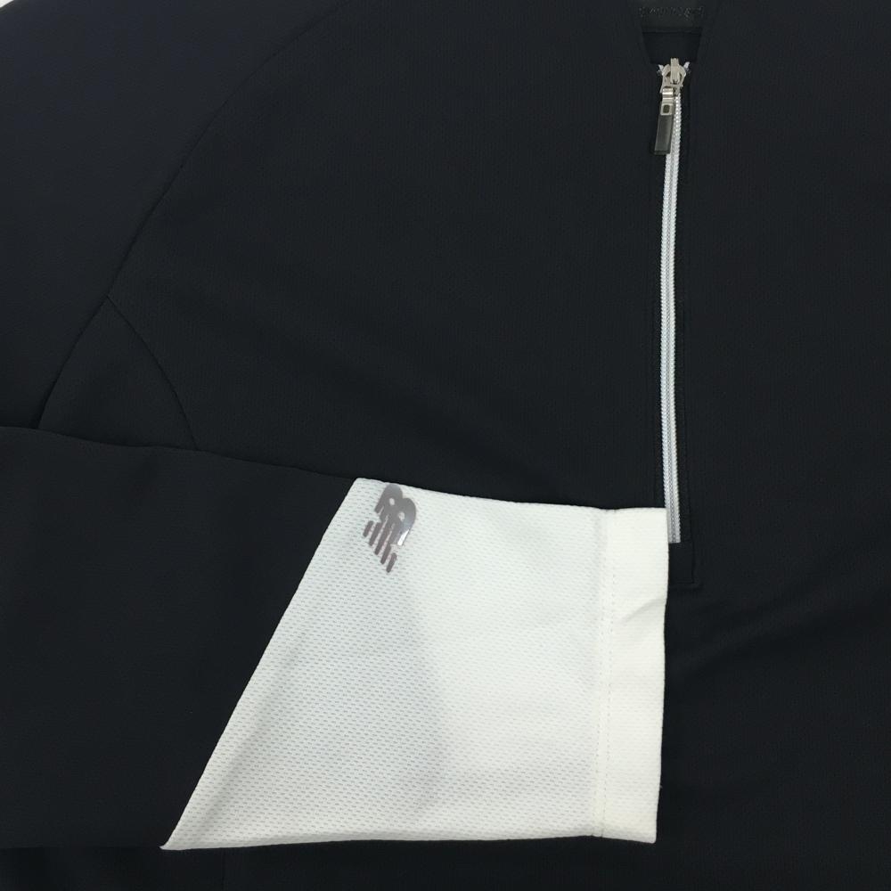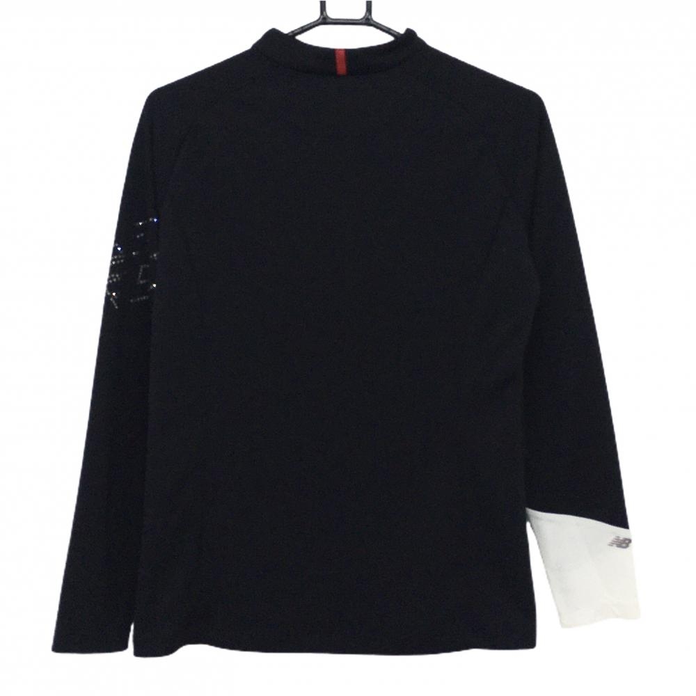 【美品】ニューバランスゴルフ 長袖シャツ 黒 ハーフジップ 袖ラインストーン レディース 2(L) ゴルフウェア New Balance