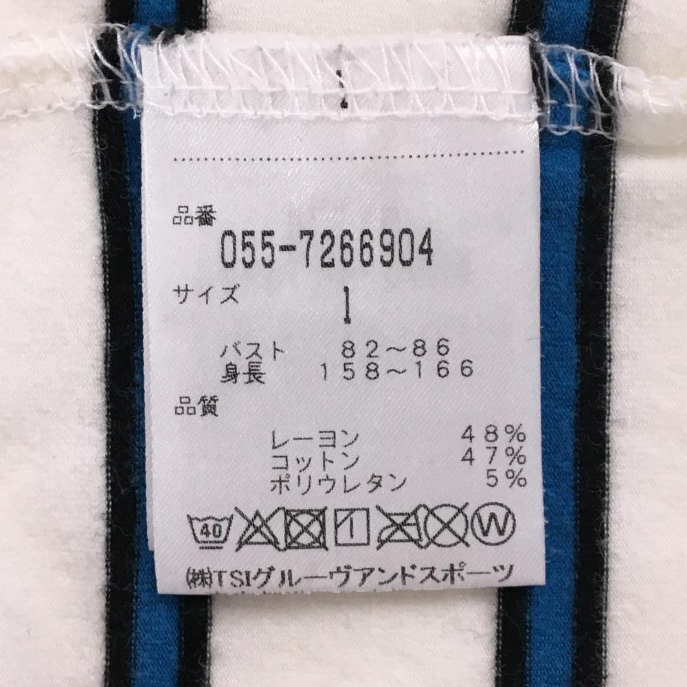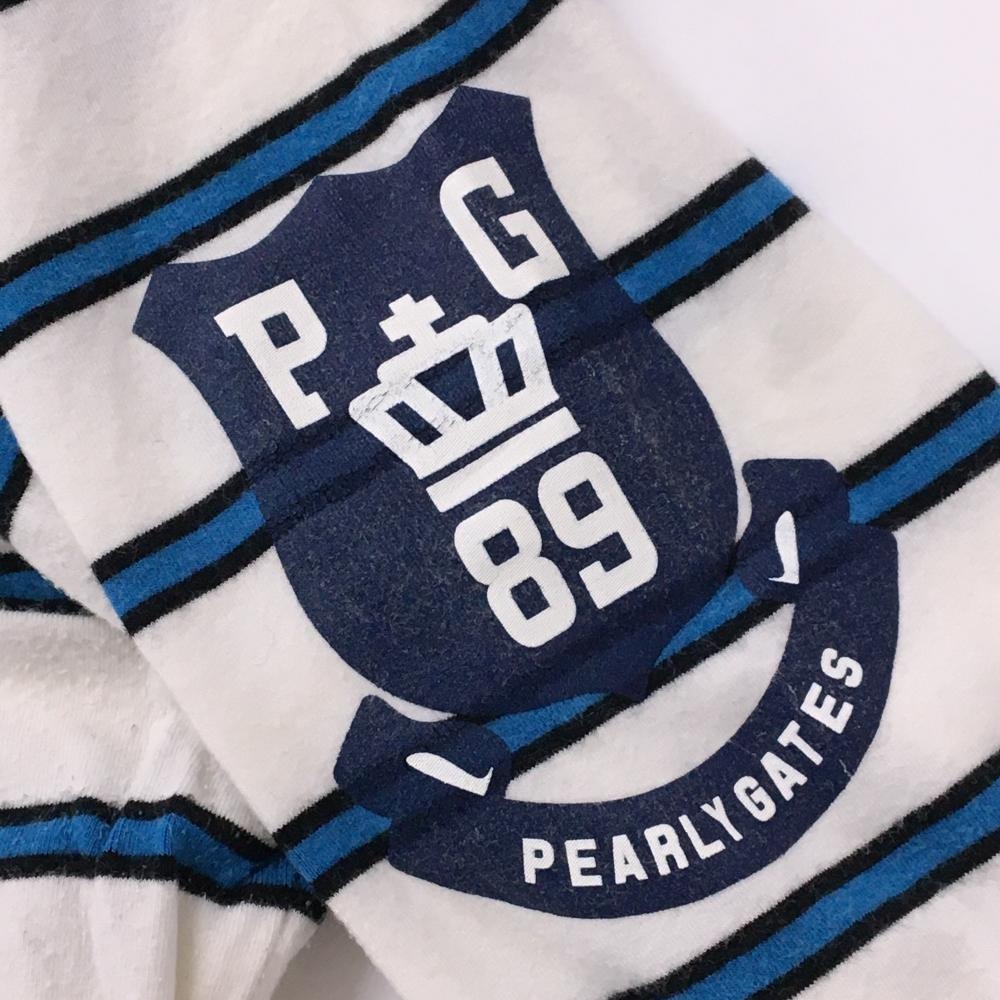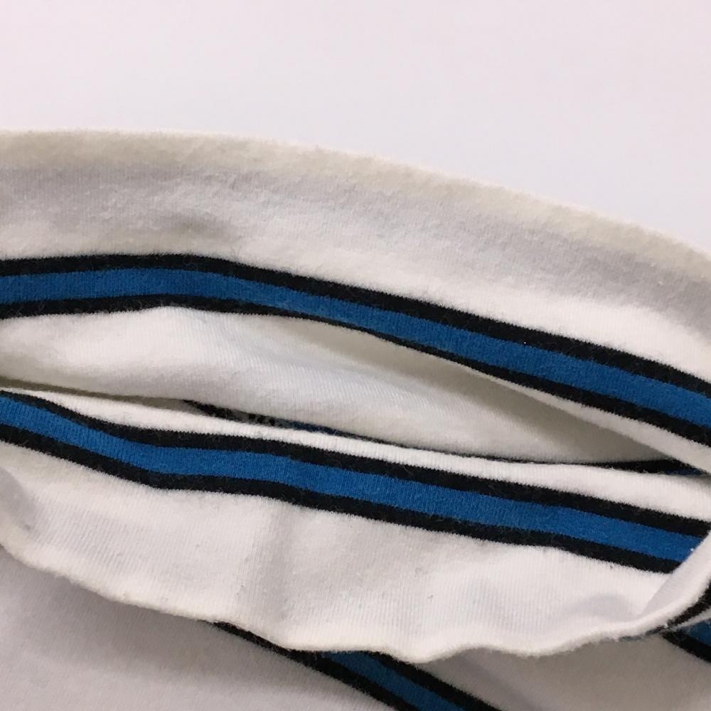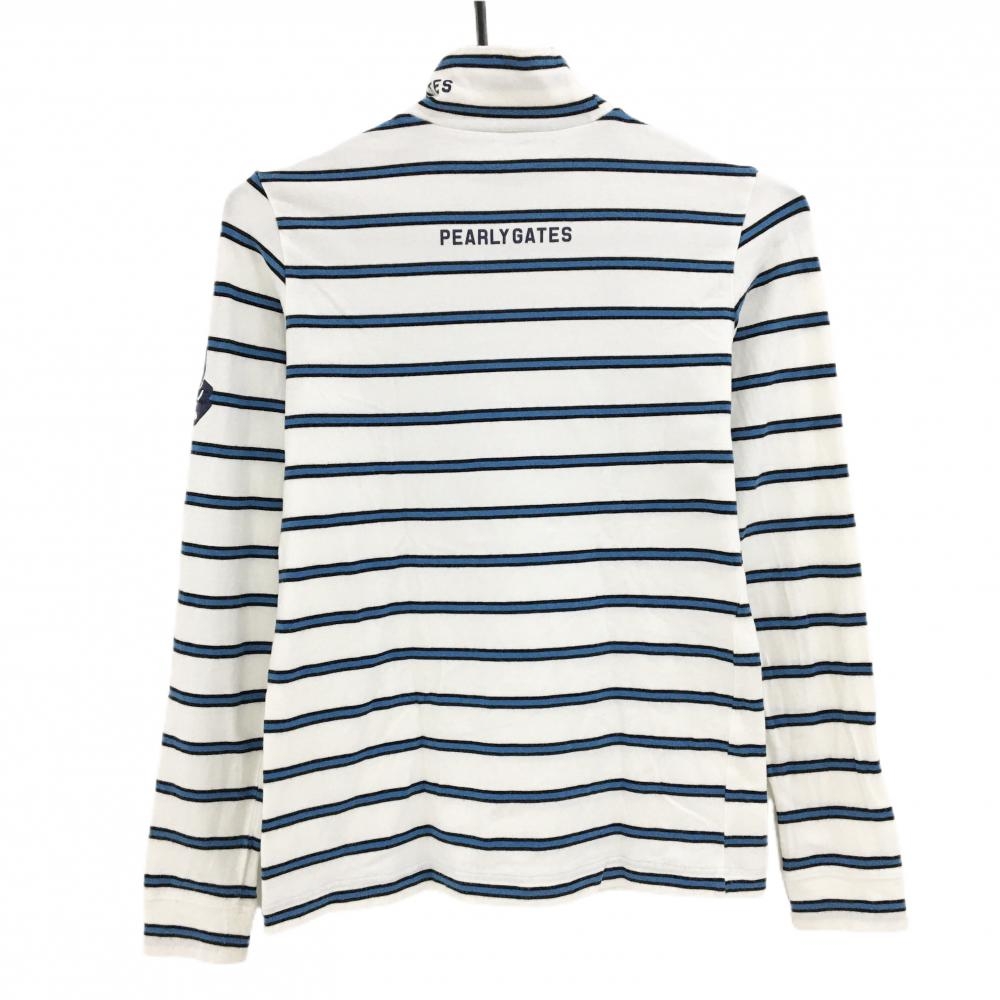 パーリーゲイツ 長袖ハイネックシャツ 白×ブルー ボーダー ネックロゴ レディース 1(M) ゴルフウェア PEARLY GATES