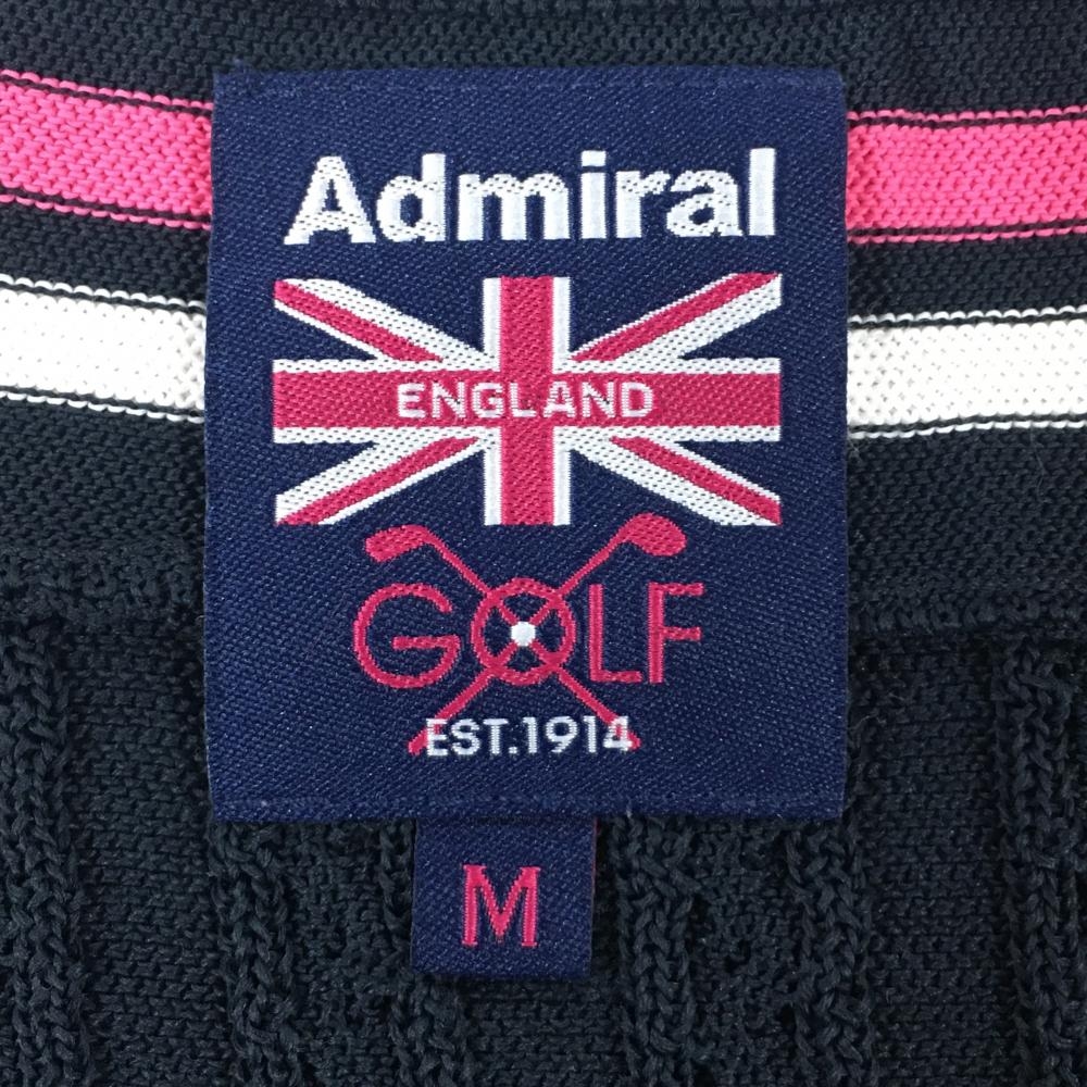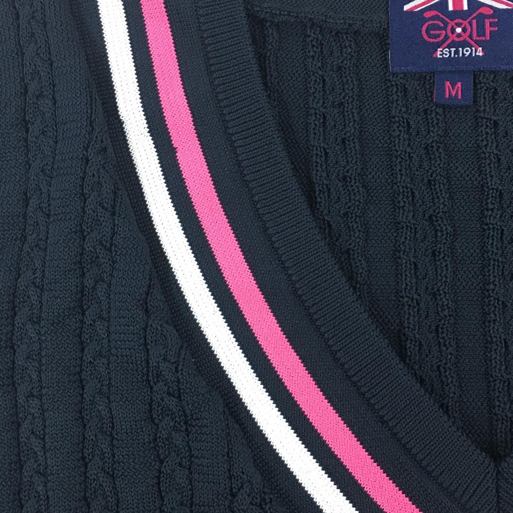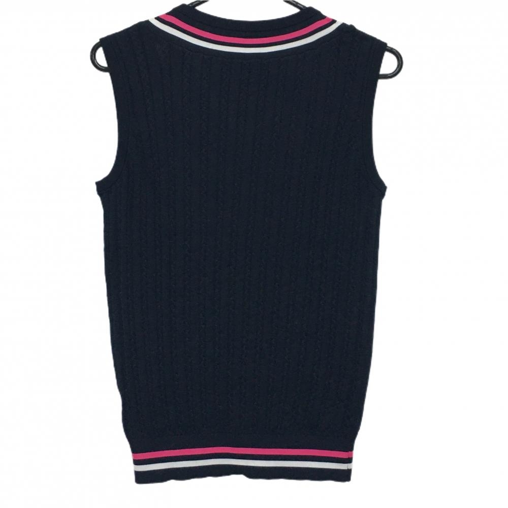 【美品】アドミラル ニットベスト ネイビー×ピンク ネックライン Vネック レディース M ゴルフウェア Admiral