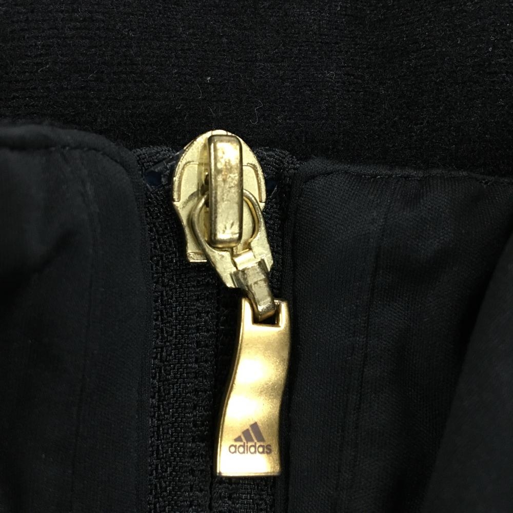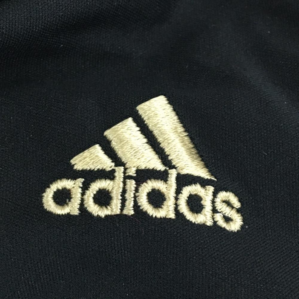 【美品】アディダス ジャケット 黒×ゴールド ロゴ刺しゅう 裏微起毛 フード収納可 レディース S/P ゴルフウェア adidas