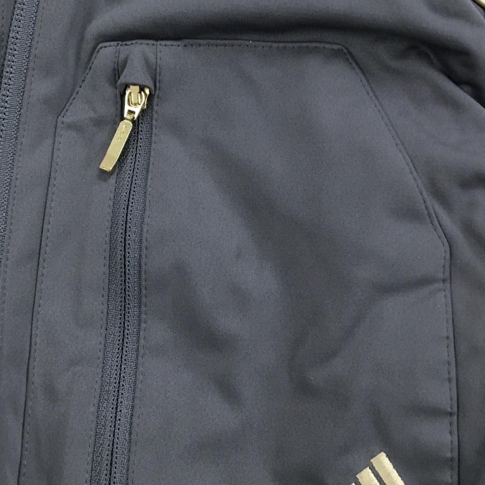 アディダス アウターベスト グレー×ゴールド ロゴ刺しゅう 裏微起毛 レディース S/P ゴルフウェア adidas