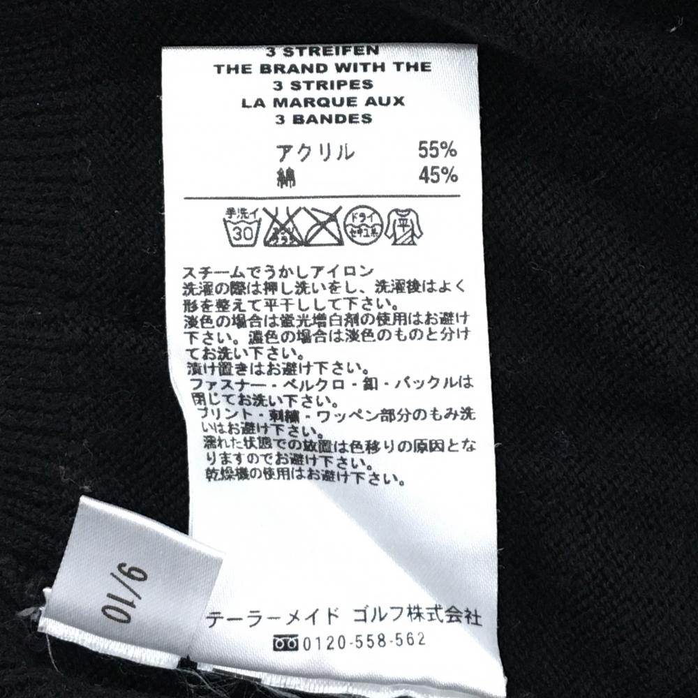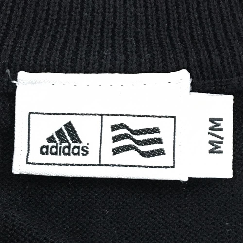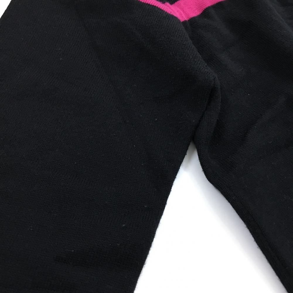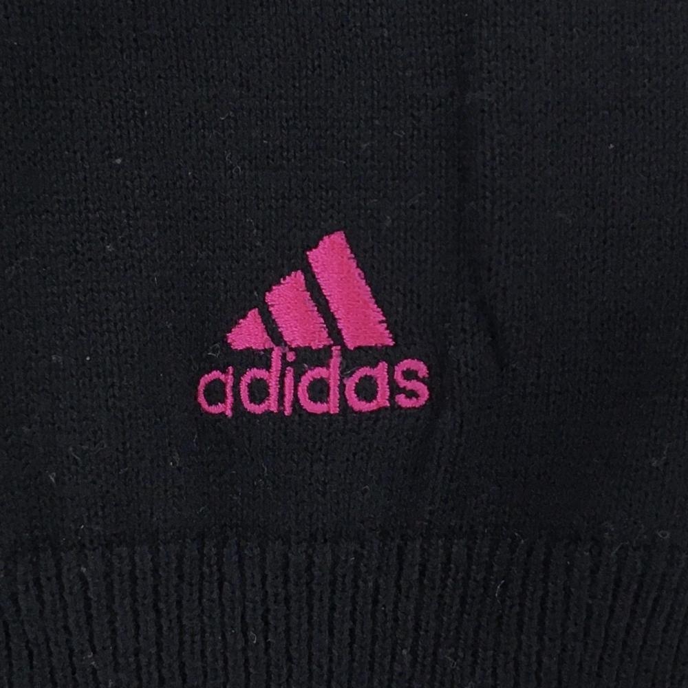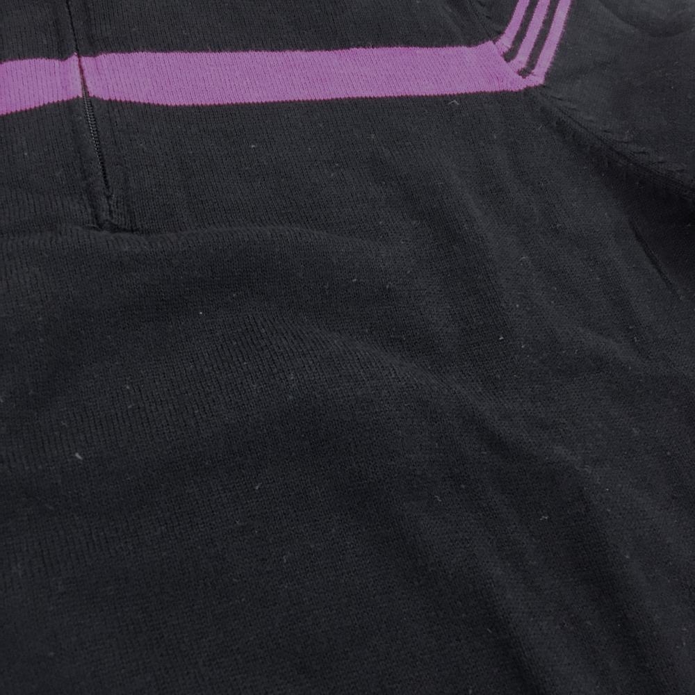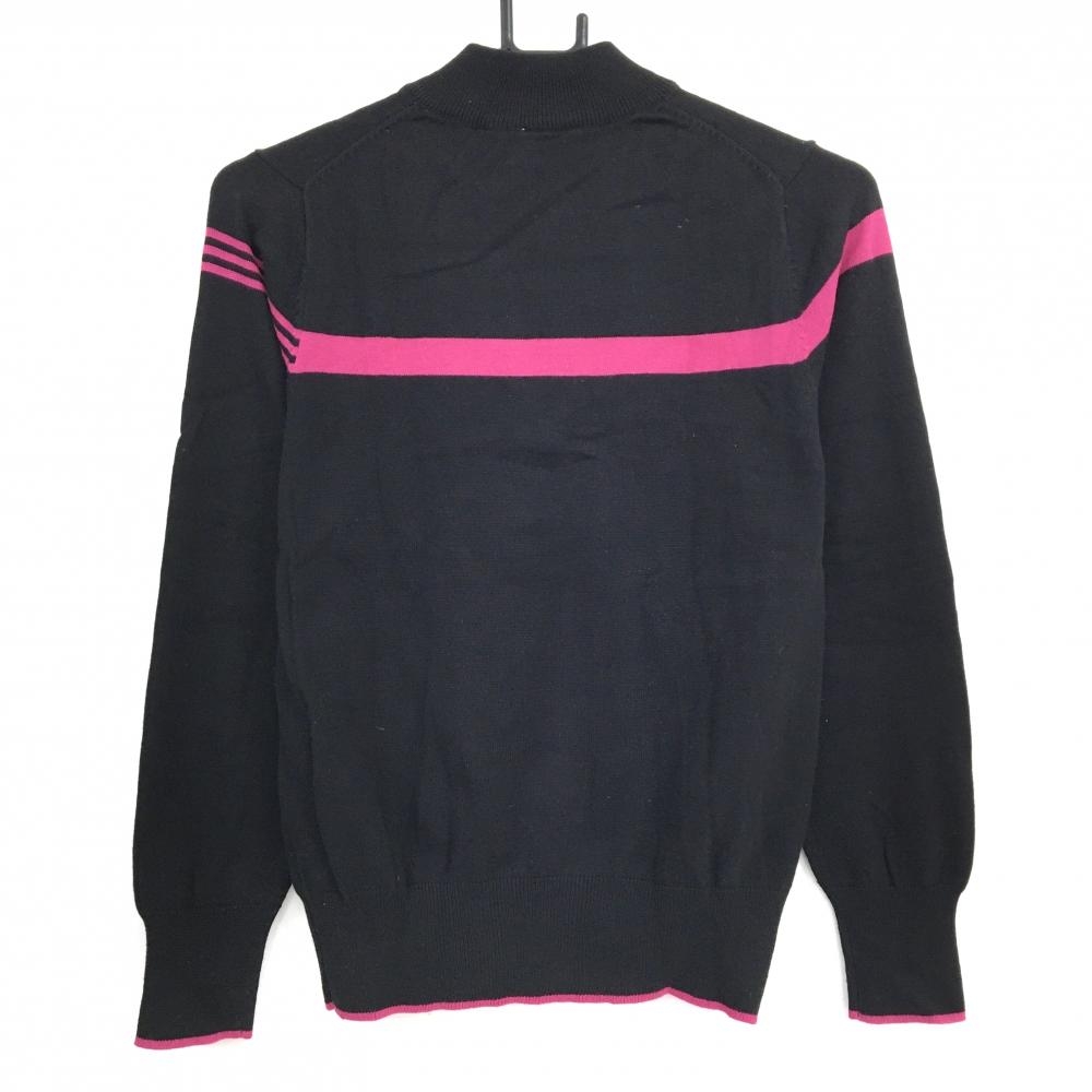 【美品】アディダス ハイネックセーター 黒×ピンク 胸元ライン ハーフジップ ニット コットン混 レディース M/M ゴルフウェア adidas