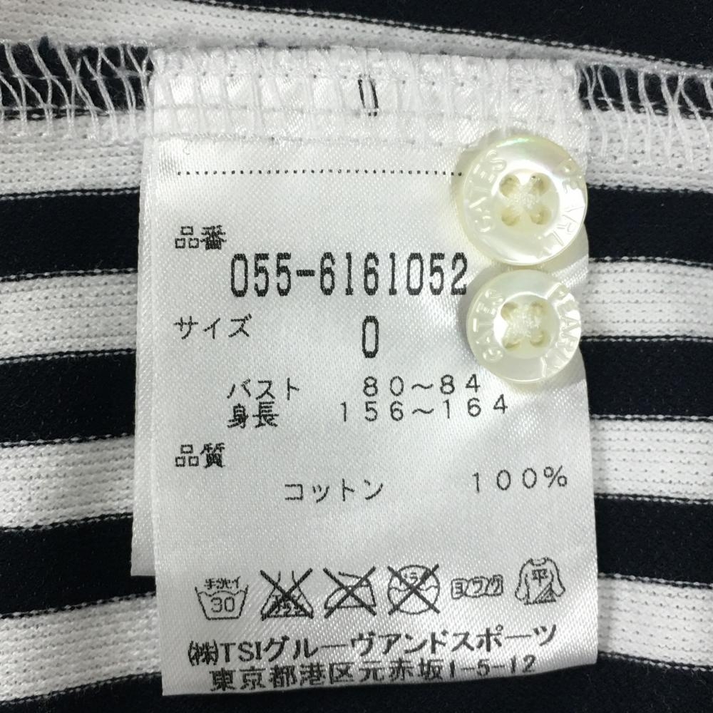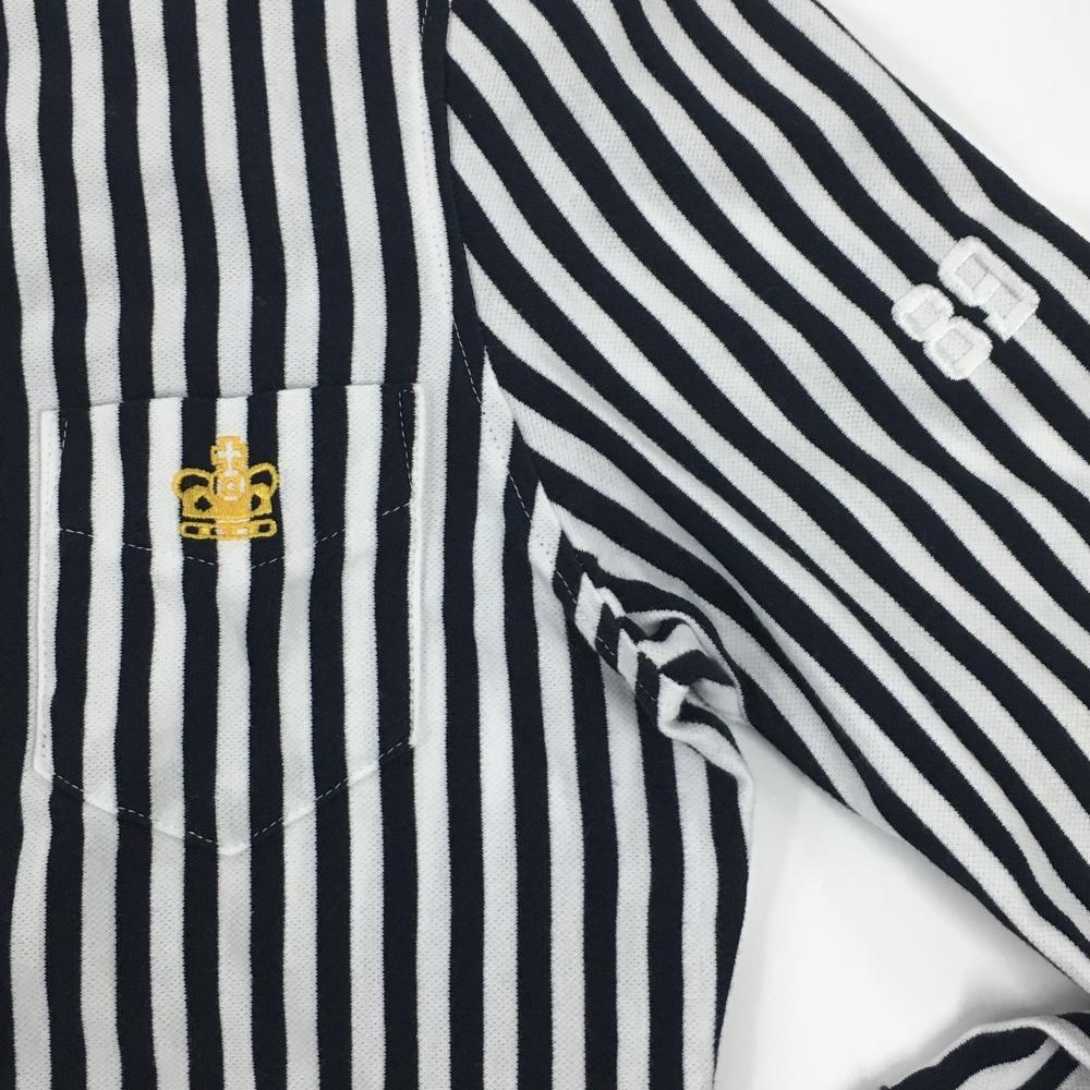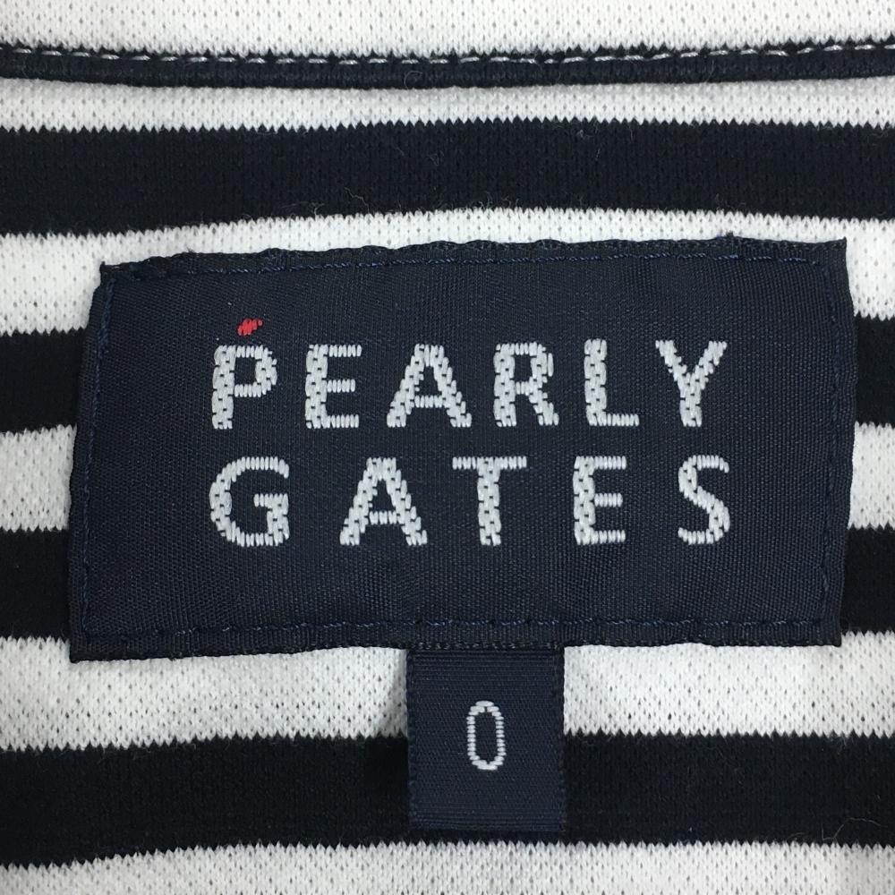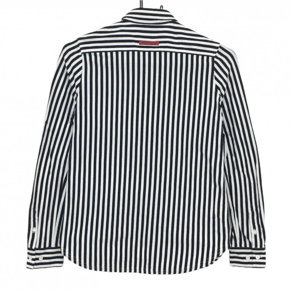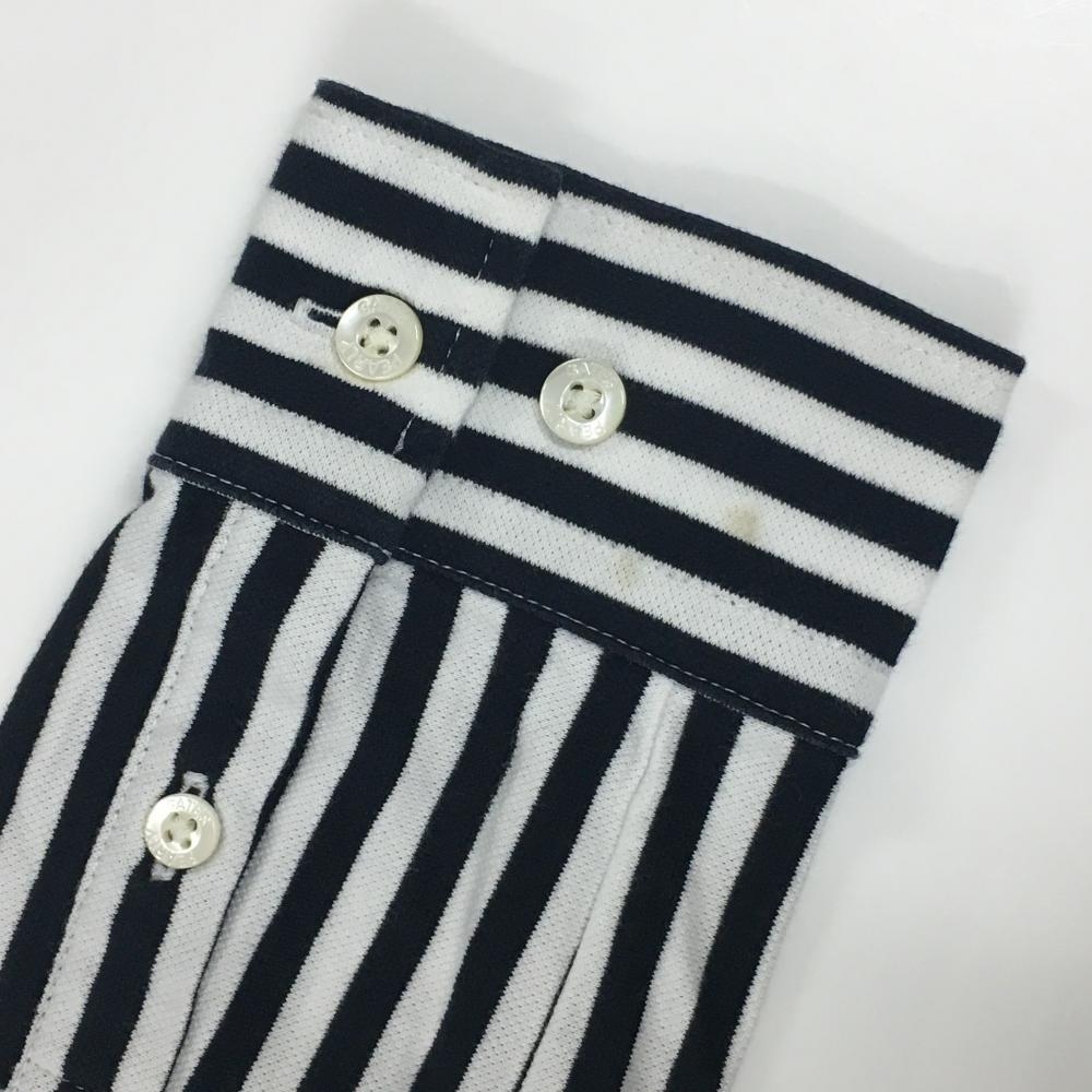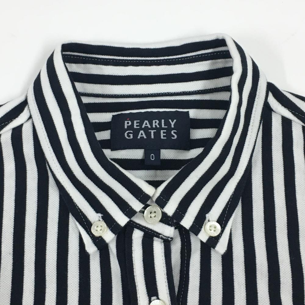 【美品】パーリーゲイツ 長袖シャツ 黒×白 ストライプ ボタンダウン レディース 0(S) ゴルフウェア PEARLY GATES