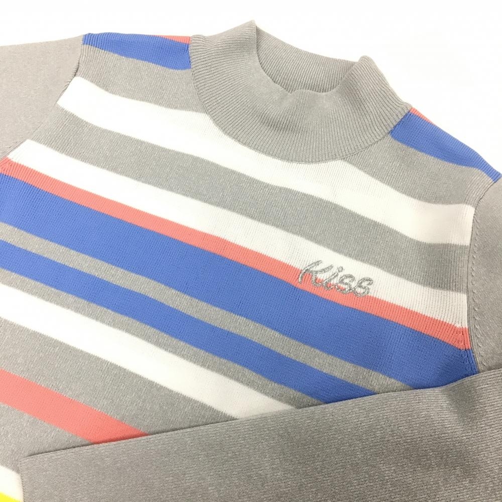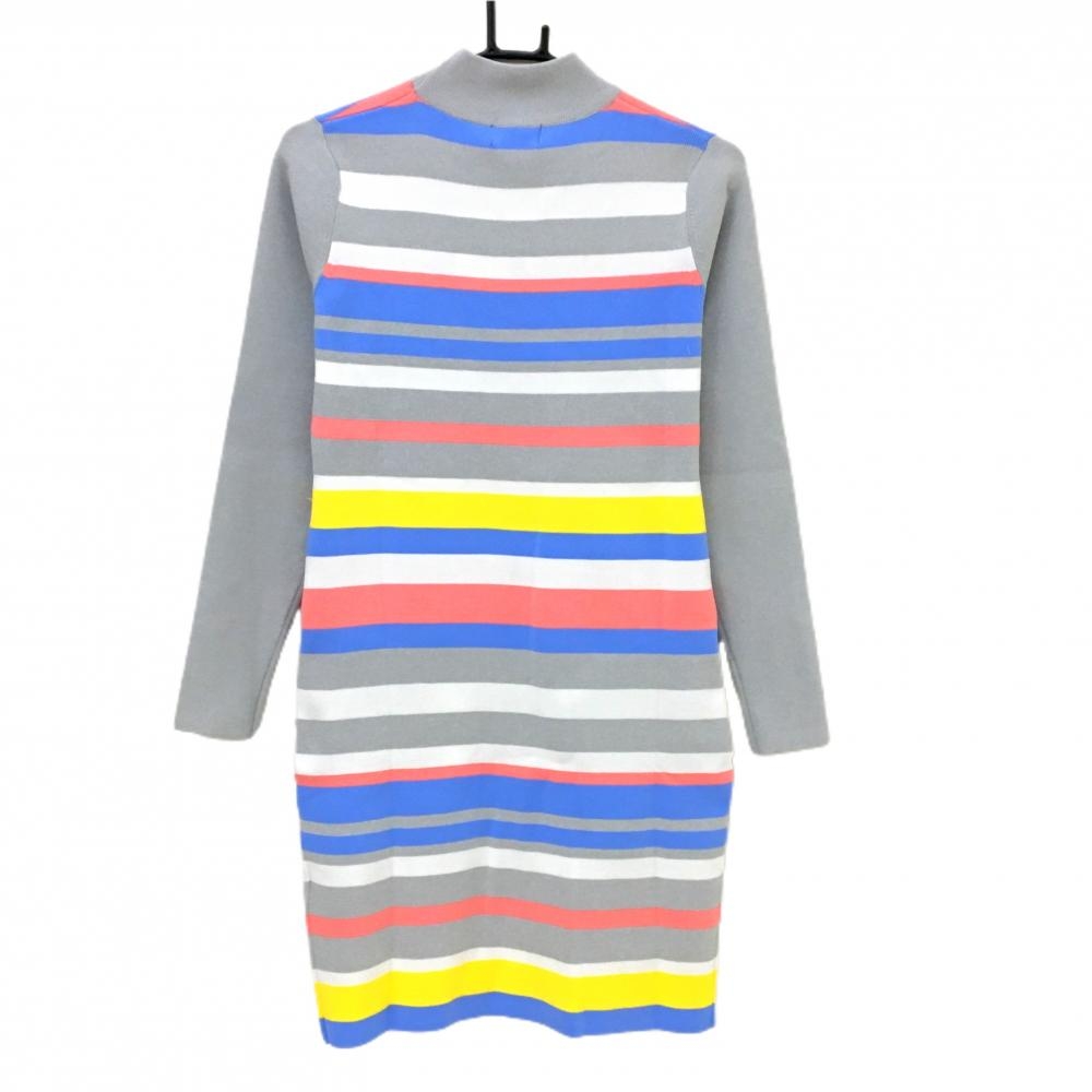 【新品】キスオンザグリーン ニットハイネックワンピース ライトグレー×マルチカラー レディース 2(M) ゴルフウェア kiss on the green
