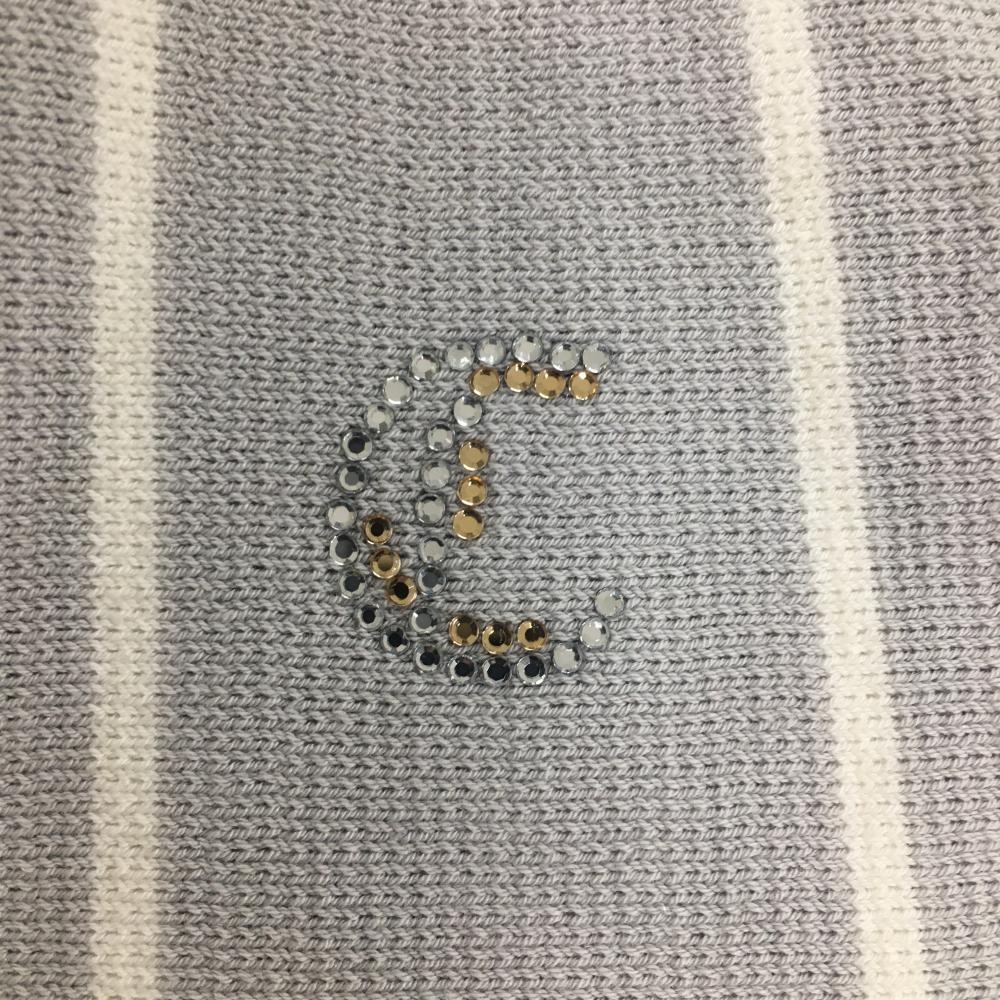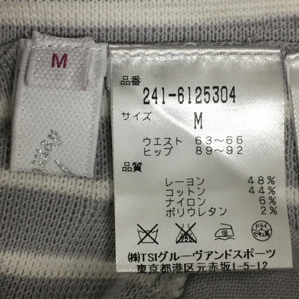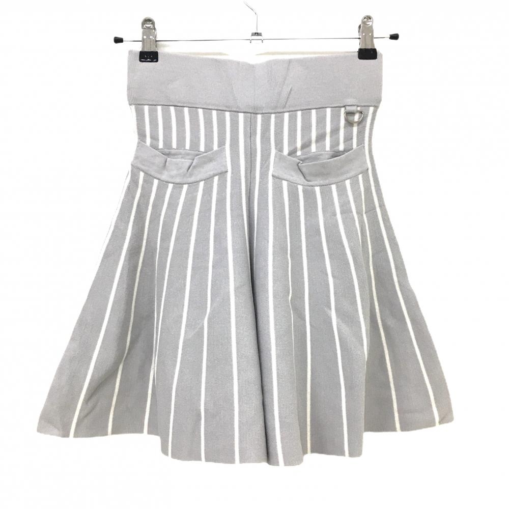 【美品】キャロウェイ ニットスカート ライトグレー×白 ストライプ 裾ラインストーンロゴ レディース M ゴルフウェア Callaway