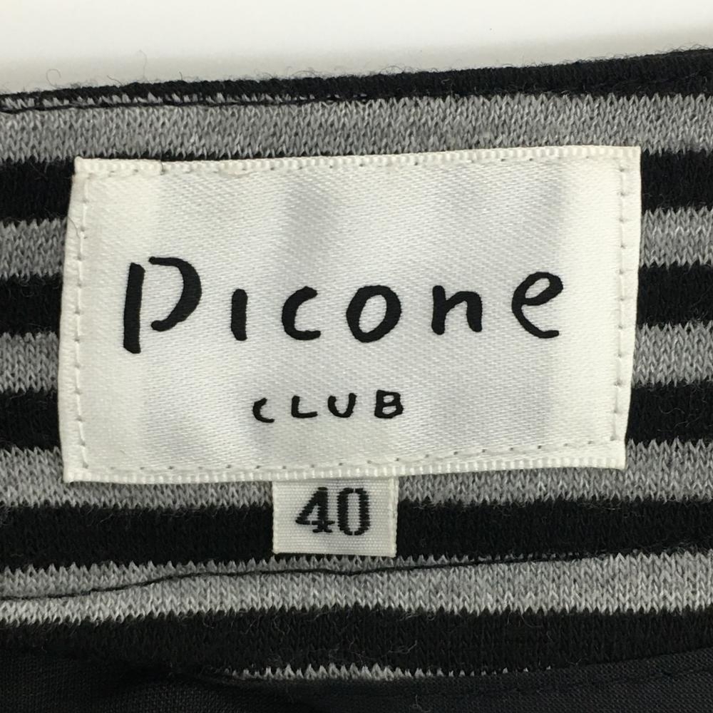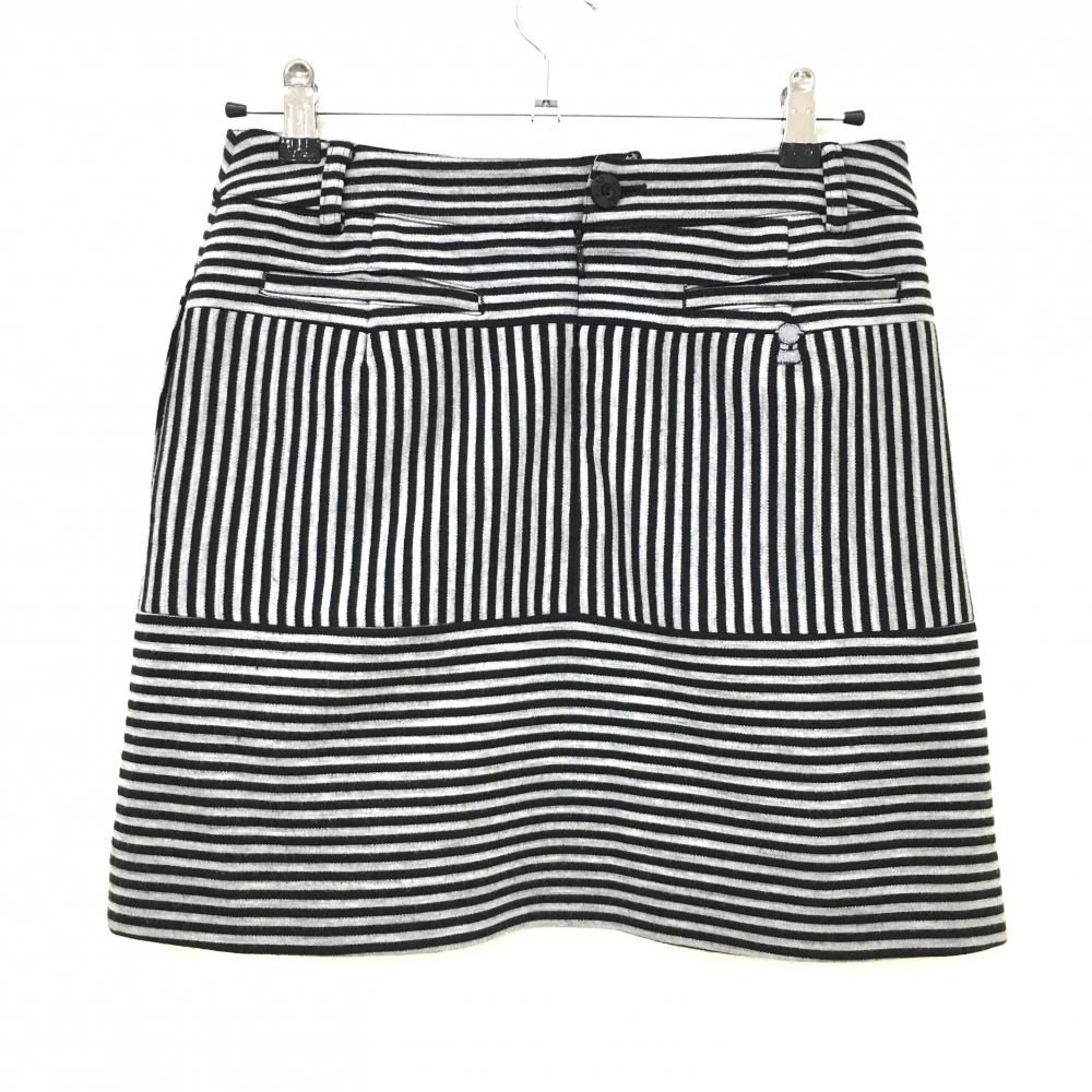 【美品】ピッコーネ スカート グレー×黒 ボーダー ロゴ刺しゅう 裏地付き レディース 40(L) ゴルフウェア PICONE