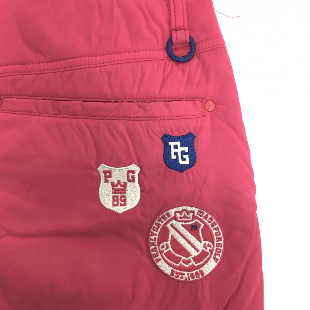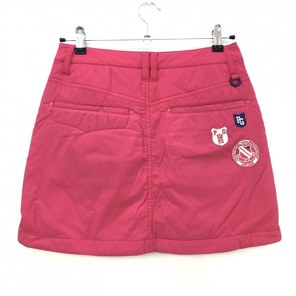 【超美品】パーリーゲイツ 中綿スカート ピンク ロゴネイビー 複数ワッペン レディース 0(S) ゴルフウェア PEARLY GATES