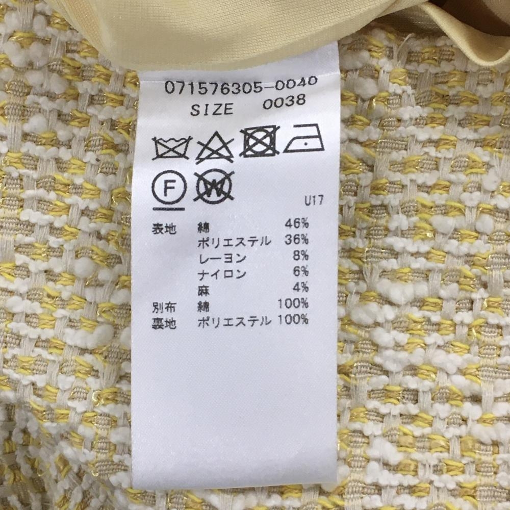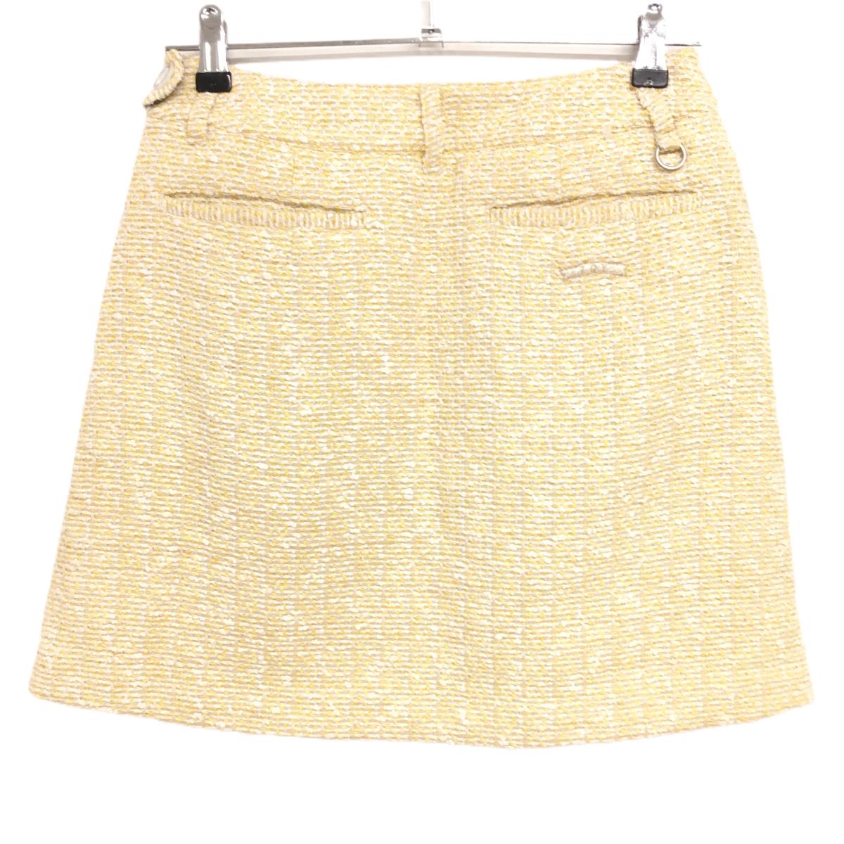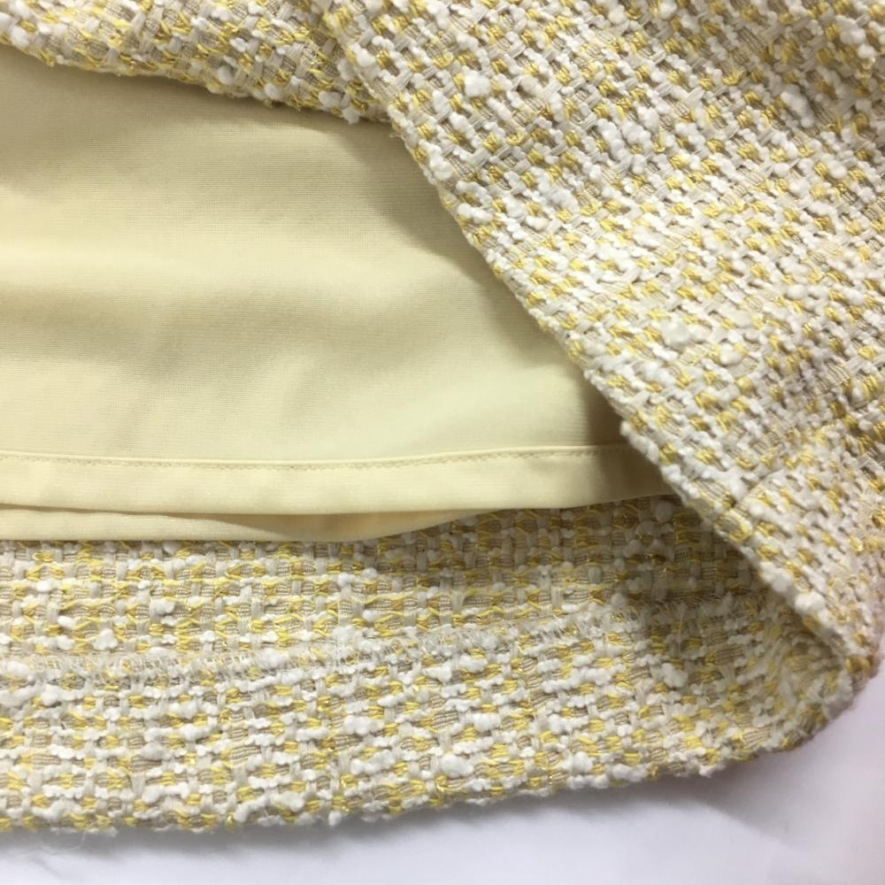 ゾーイ スカート 白×イエロー ツイード生地 バックロゴ 裏地付き レディース 38(M) ゴルフウェア ZOY