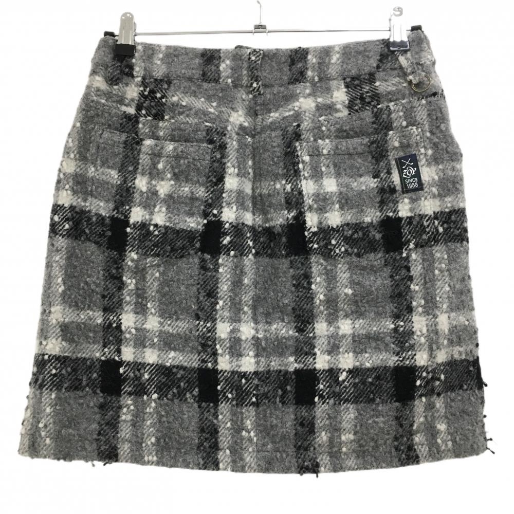 ゾーイ ウールスカート グレー×黒 チェック柄 バックロゴ 裏地付き レディース 38(M) ゴルフウェア ZOY