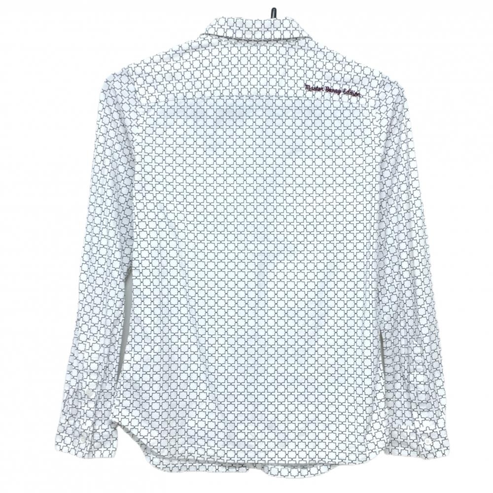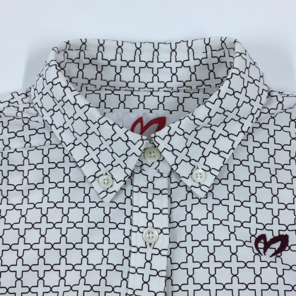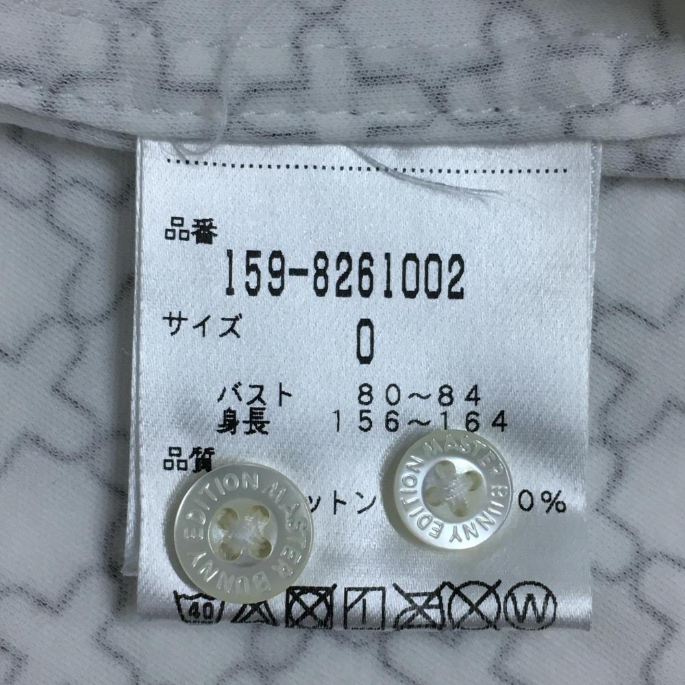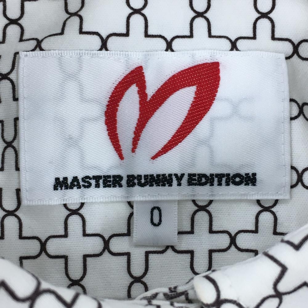 【超美品】マスターバニー 長袖シャツ 白×ダークブラウン 総柄 ボタンダウン レディース 0(S) ゴルフウェア MASTER BUNNY EDITION