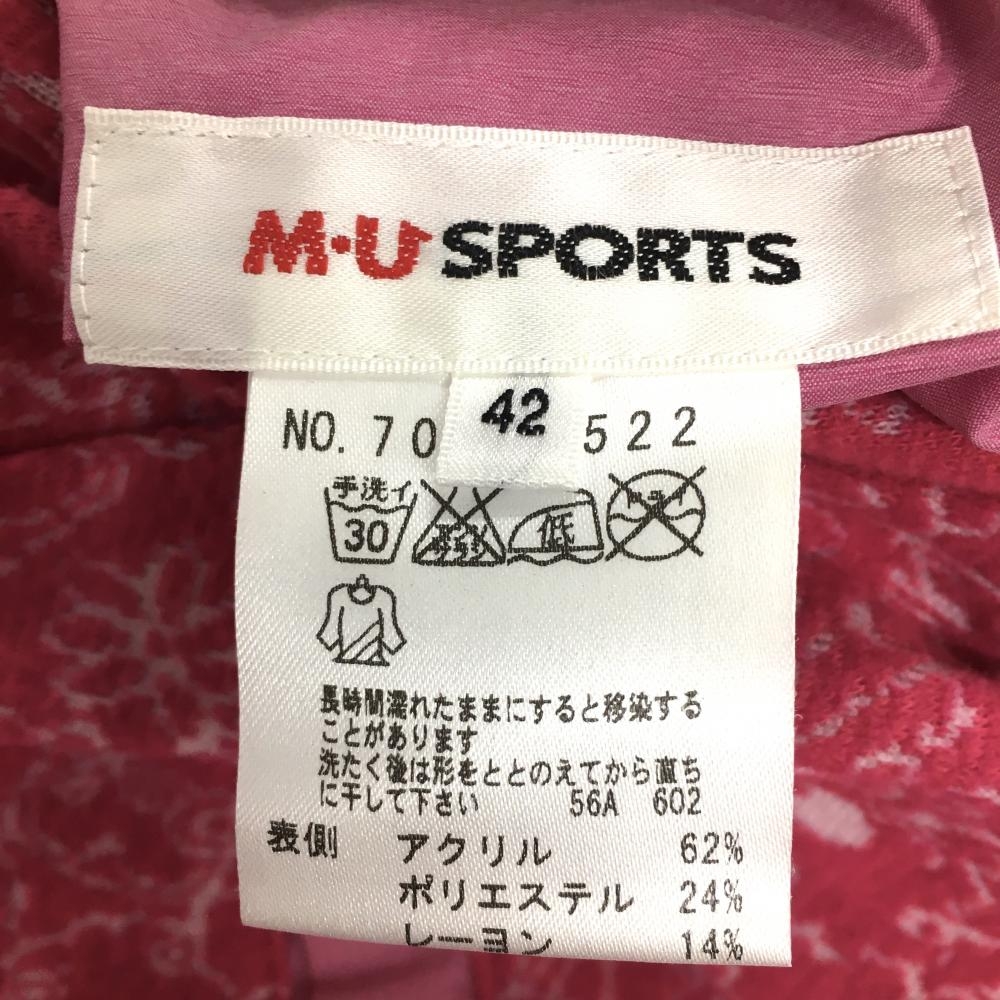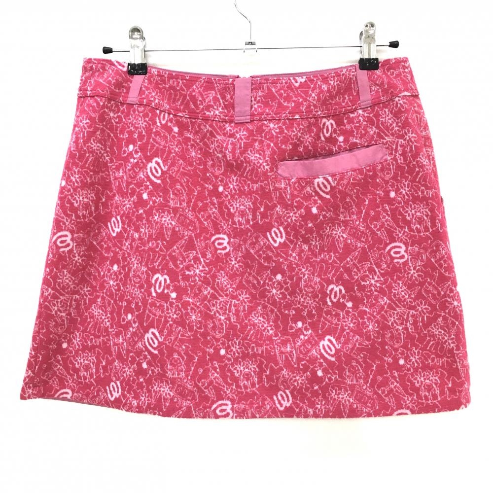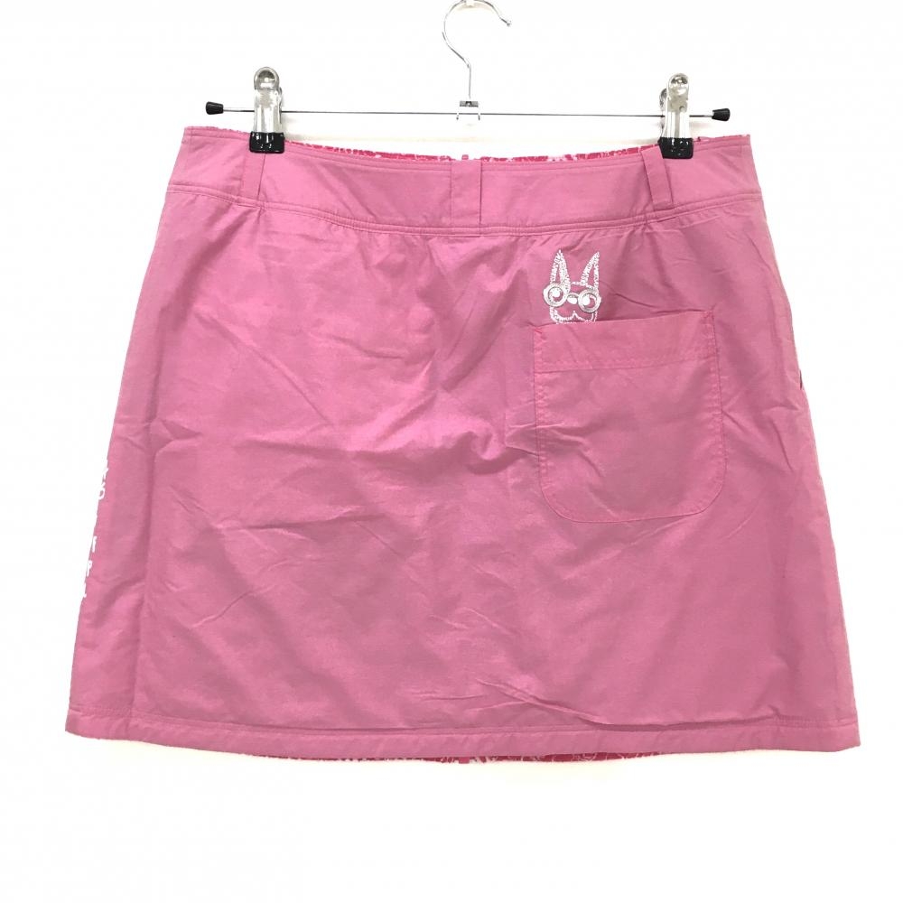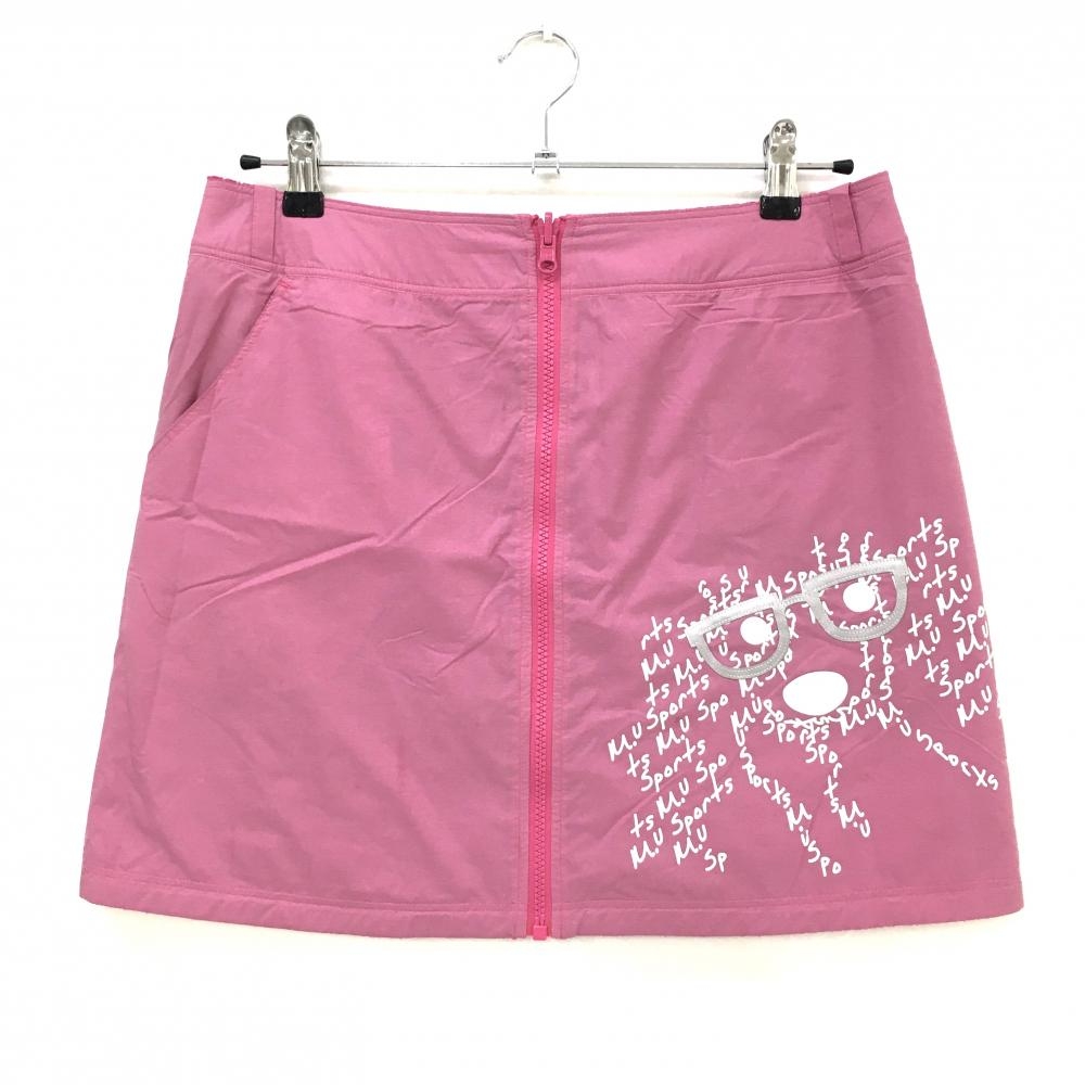 【美品】MUスポーツ リバーシブルスカート ピンク×白 ロゴ総柄 表微起毛 裏ロゴプリント レディース 42(L) ゴルフウェア M・U SPORTS