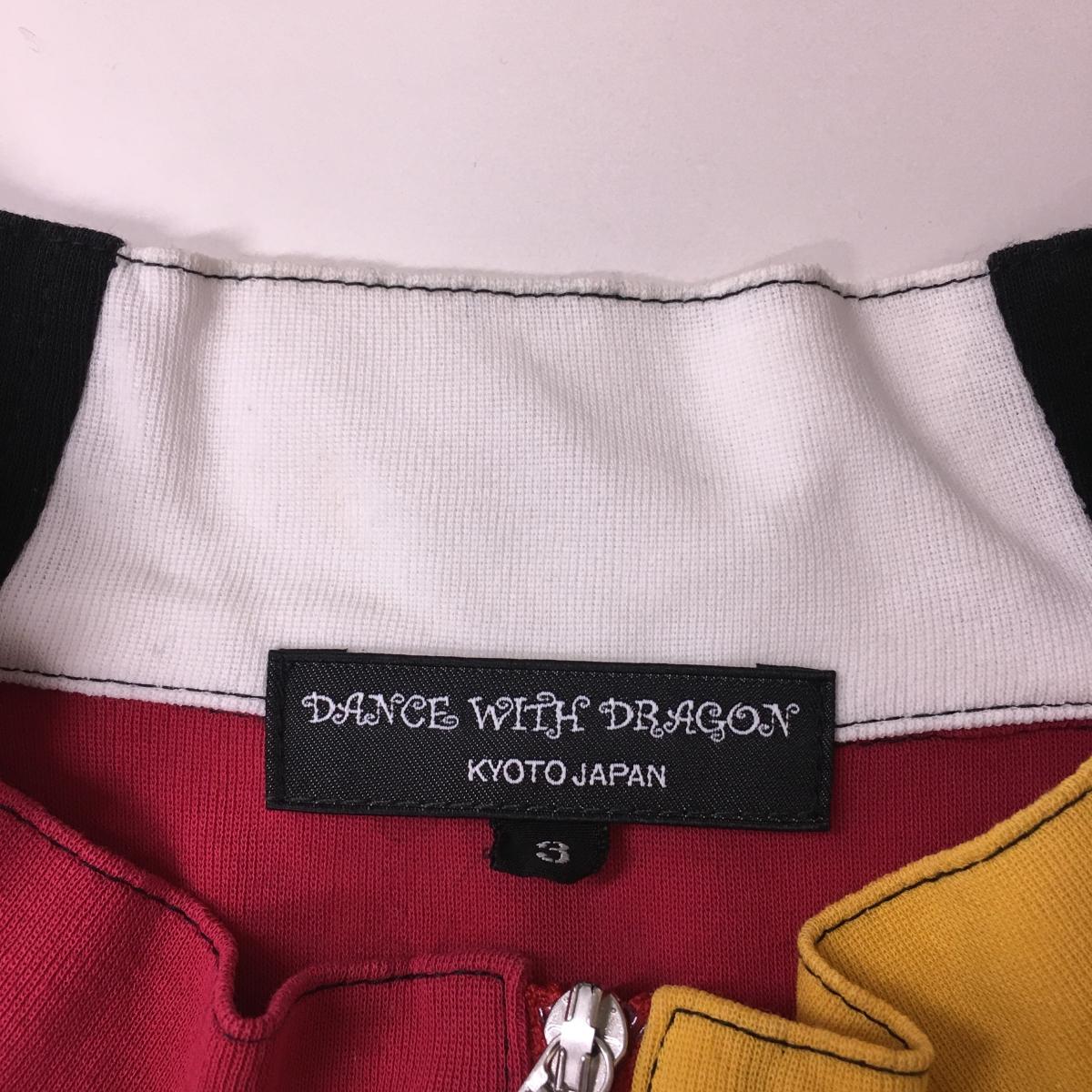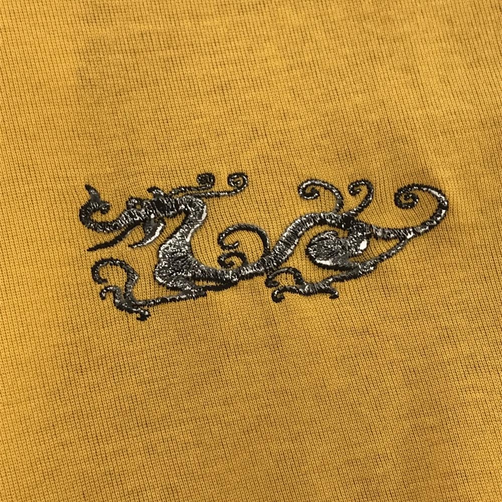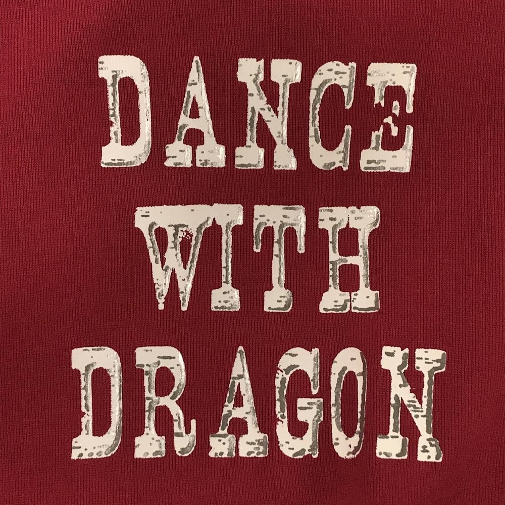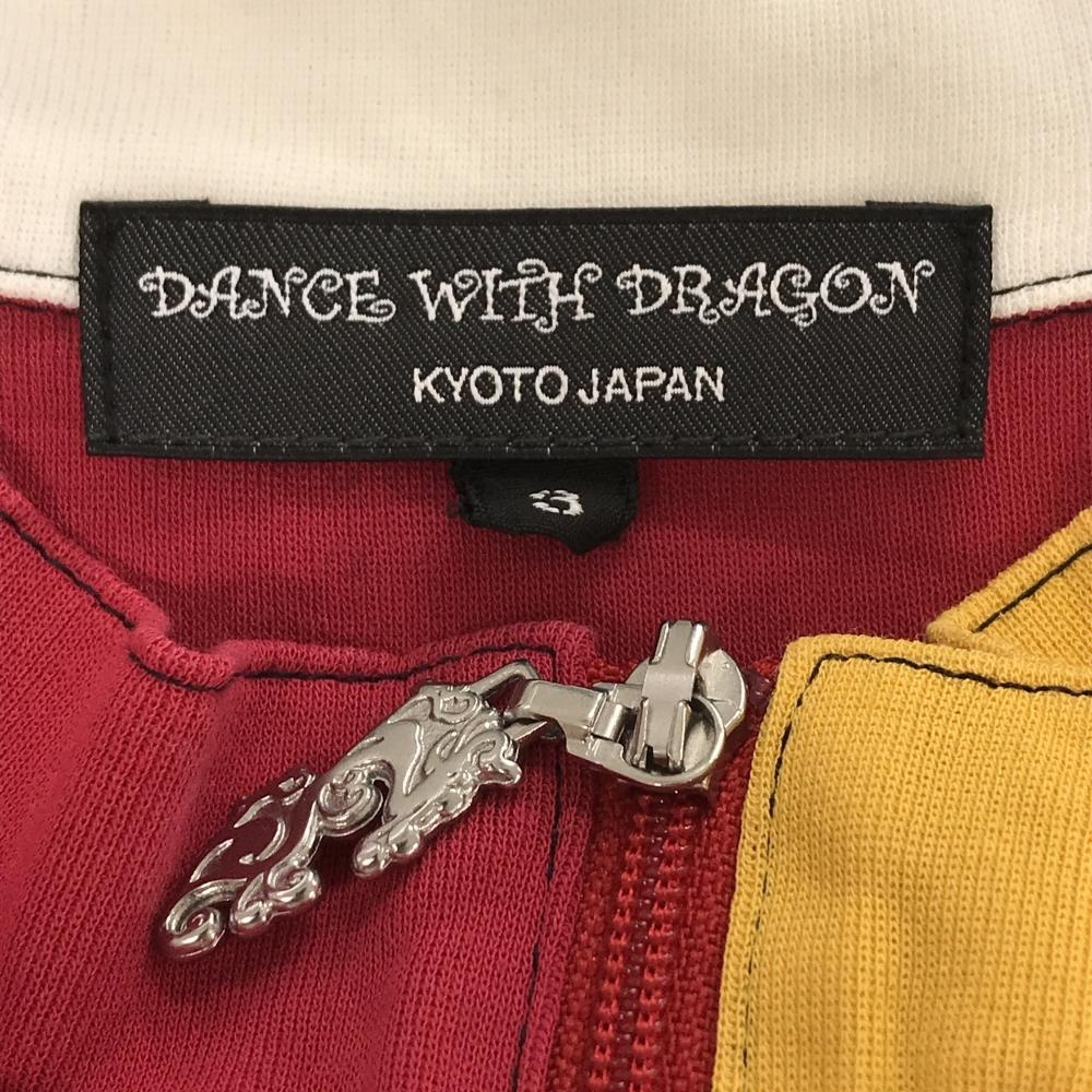 【美品】ダンスウィズドラゴン 長袖ハイネックシャツ マスタードイエロー×レッド系×白 メンズ 3(L) ゴルフウェア Dance With Dragon