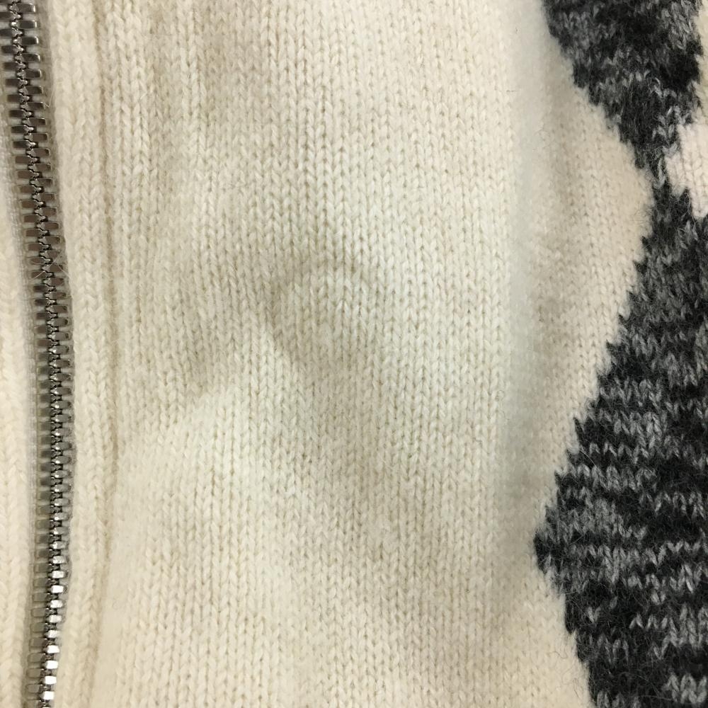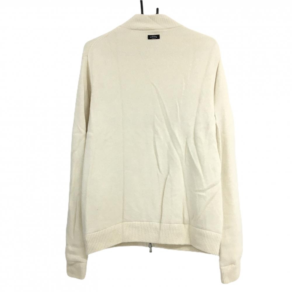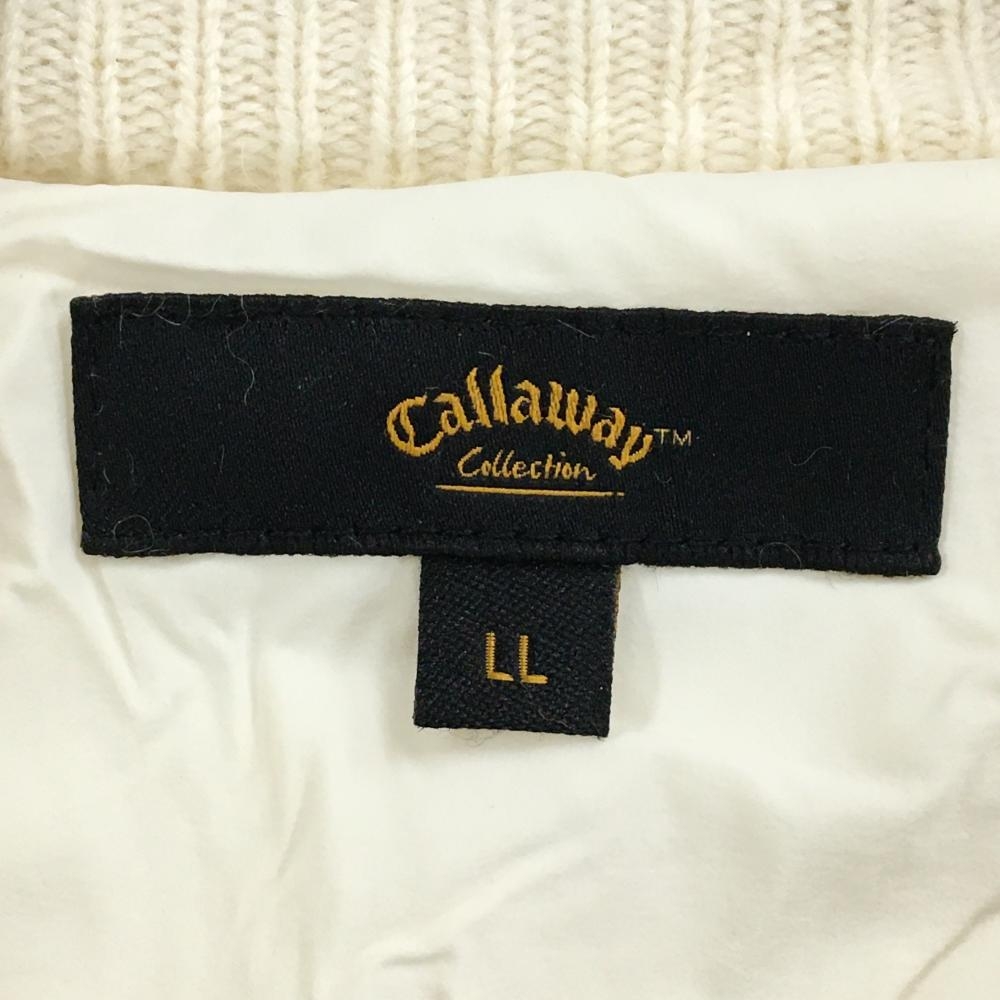 【美品】キャロウェイ ニットジャケット アイボリー×グレー ダイヤ柄 裏地付き ウール混 メンズ LL ゴルフウェア Callaway