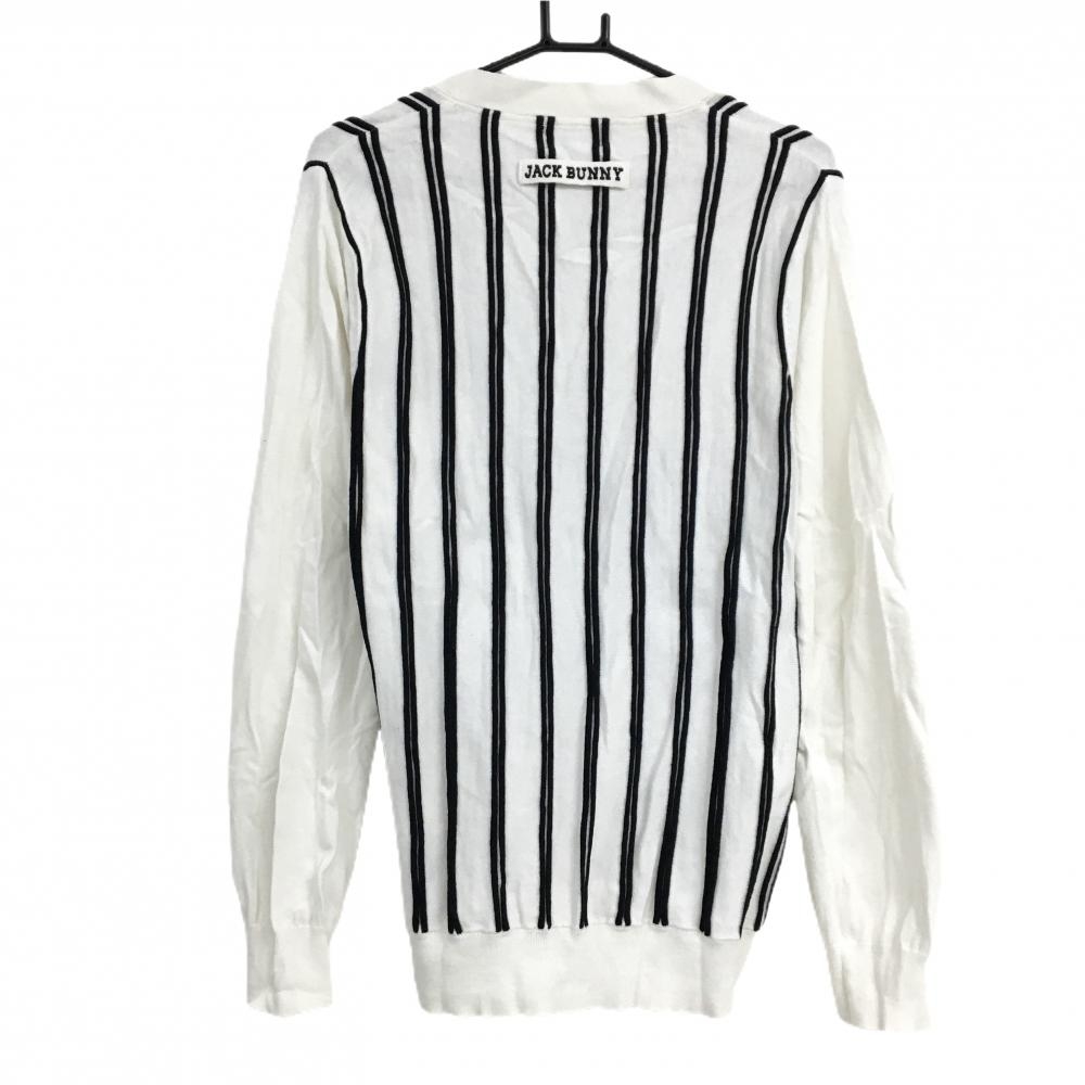 ジャックバニー ニットカーディガン 白×黒 身頃ストライプ カシミヤ混 メンズ 6(XL) ゴルフウェア Jack Bunny