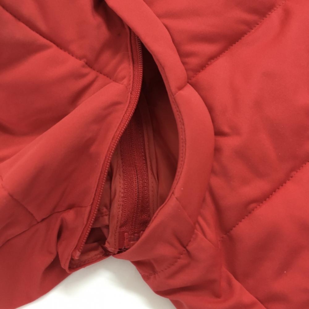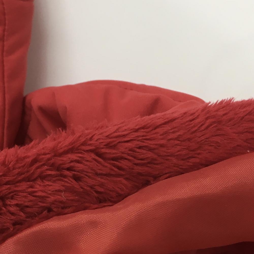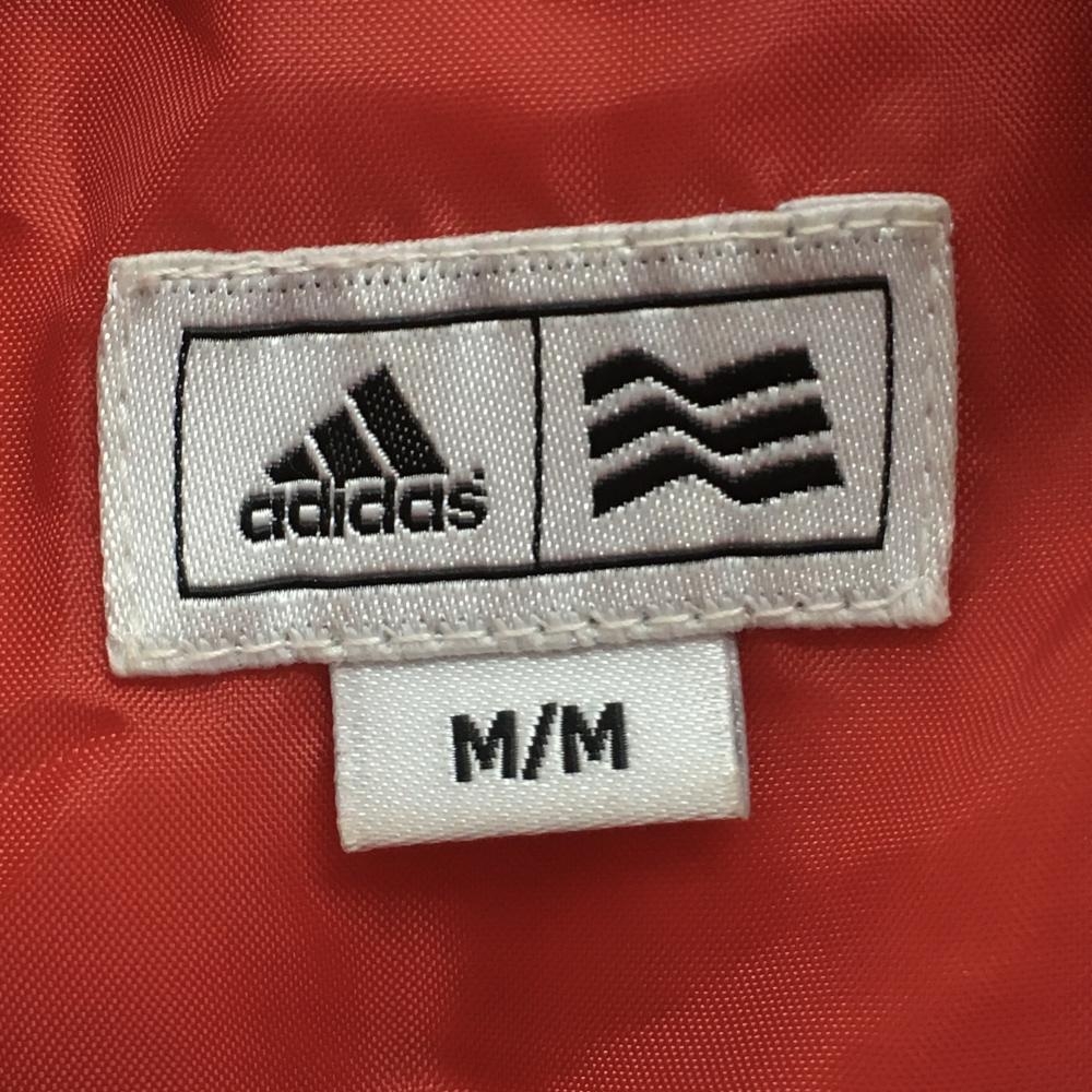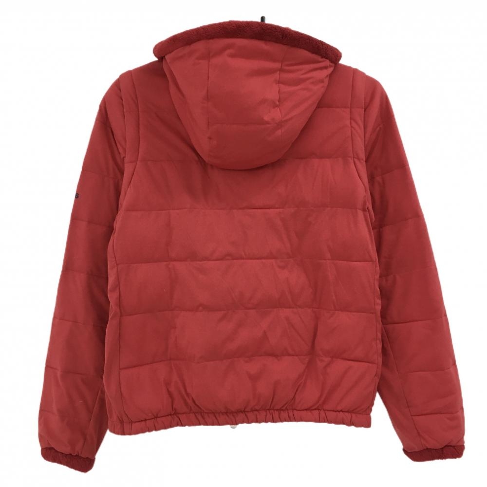 アディダス フード付き2WAY中綿ジャケット レッド ロゴネイビー 縁ボア 袖着脱可 レディース M/M ゴルフウェア adidas