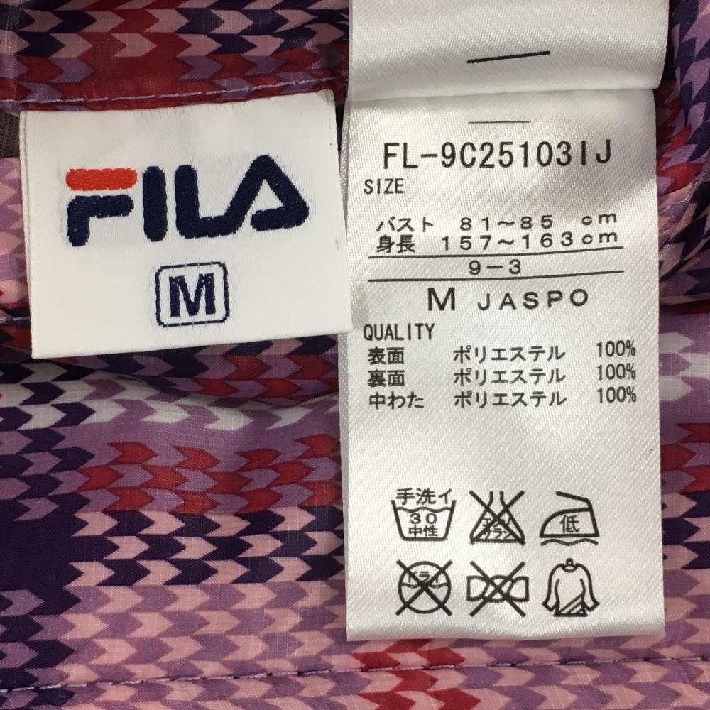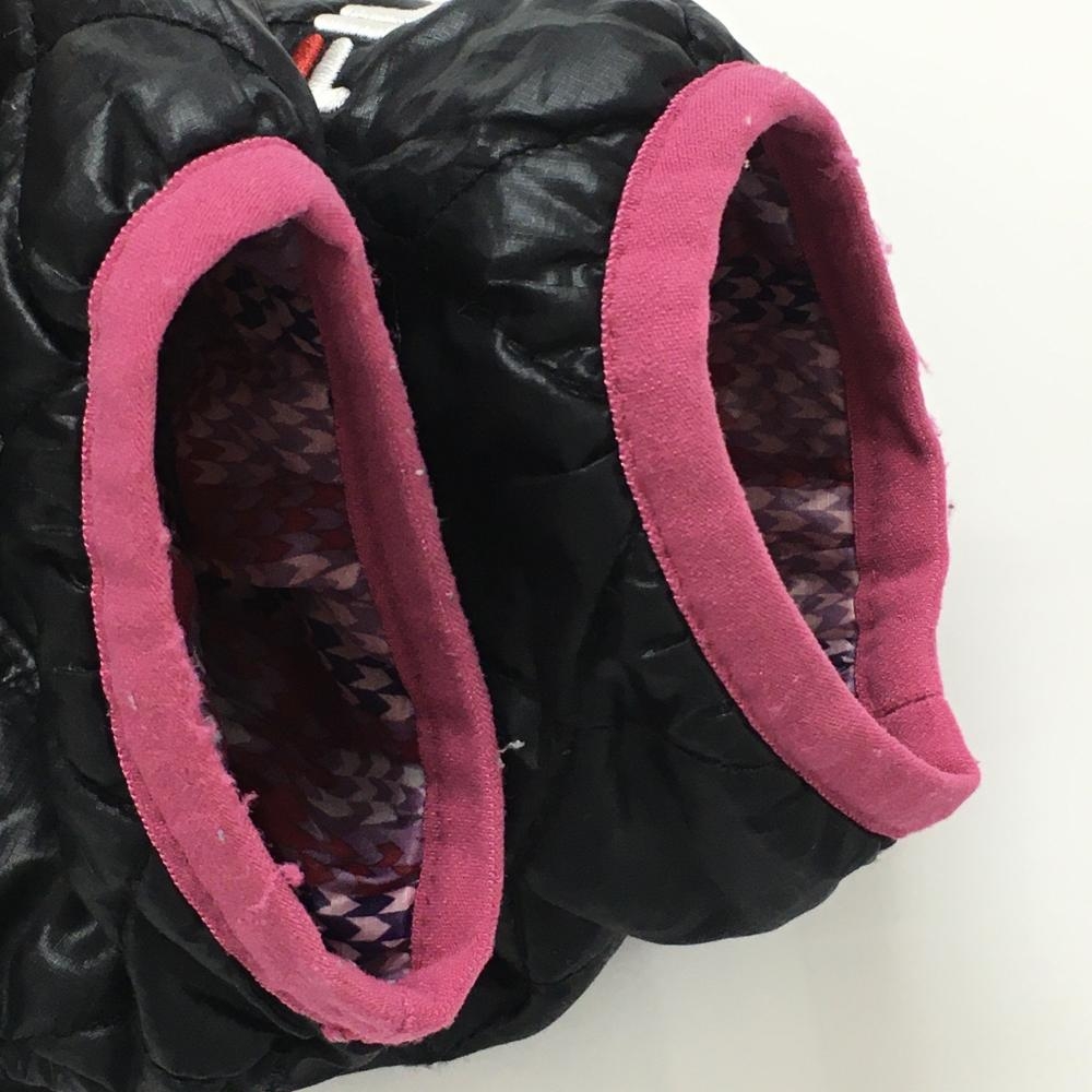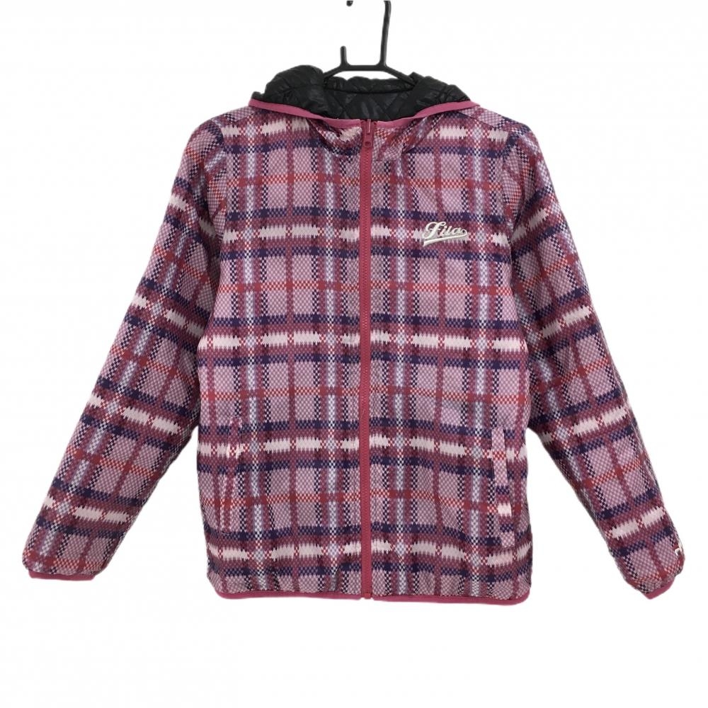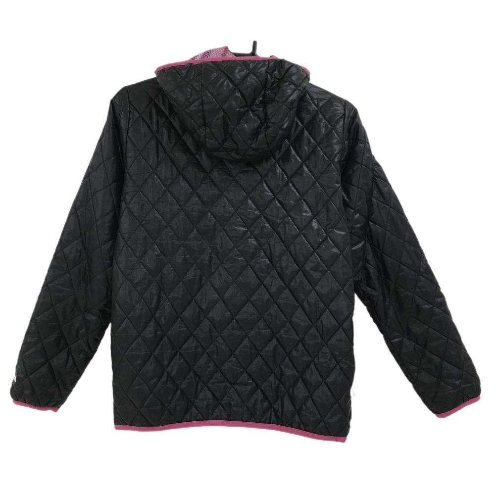 フィラゴルフ フード付きリバーシブル中綿ジャケット 黒×ピンク キルティング 裏チェック調 レディース M ゴルフウェア FILA GOLF