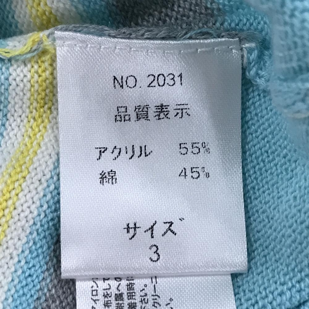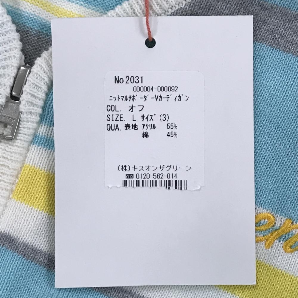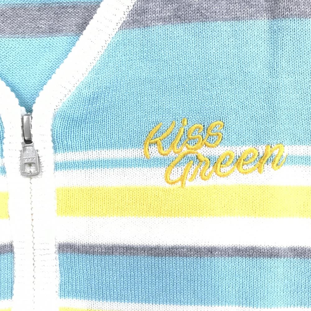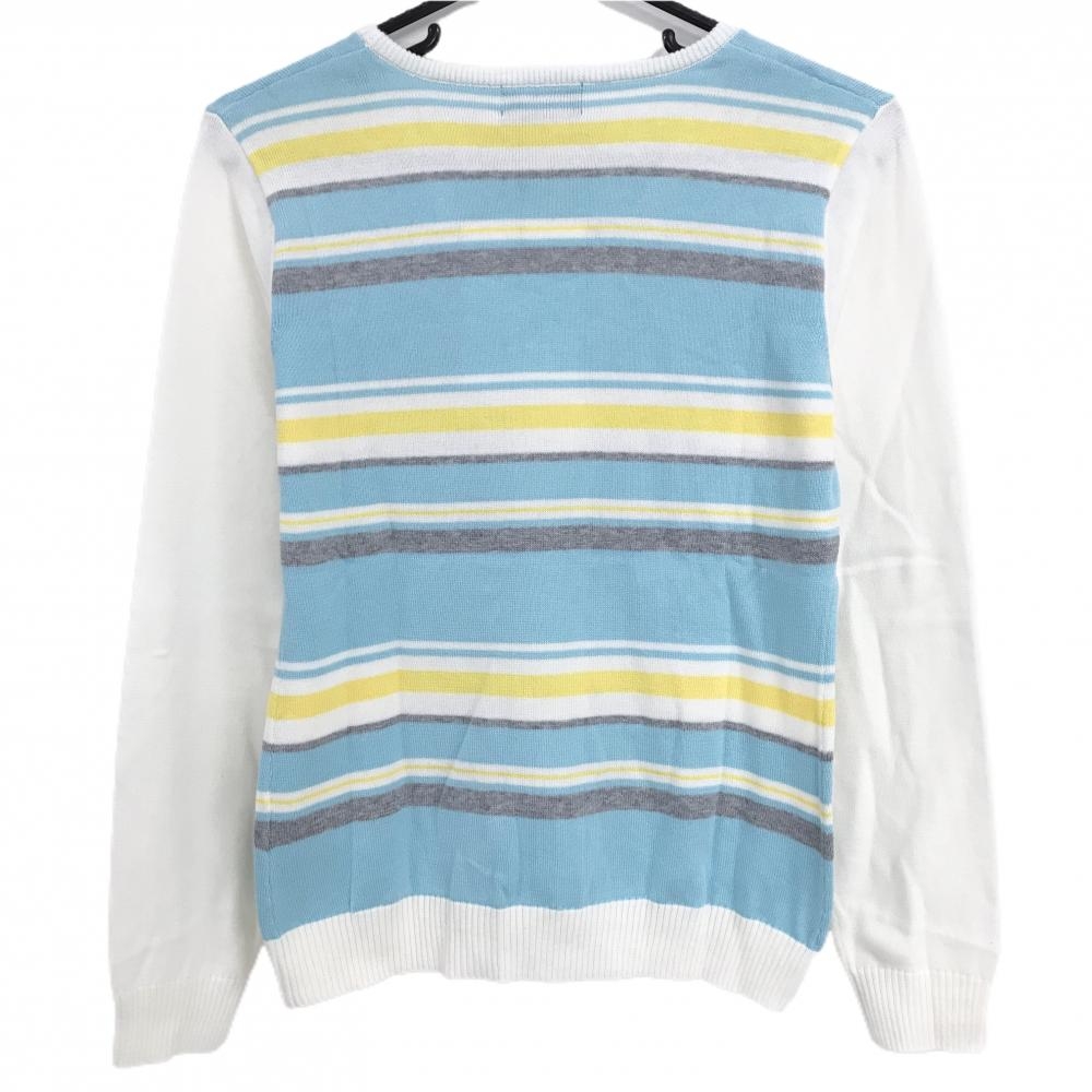 【新品】キスオンザグリーン ニットカーディガン ライトブルー×白×イエロー レディース 3(L) ゴルフウェア kiss on the green