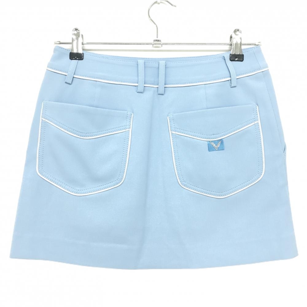 【美品】キャロウェイ スカート ライトブルー×白 ラインストーンロゴ パイピング レディース SS ゴルフウェア Callaway