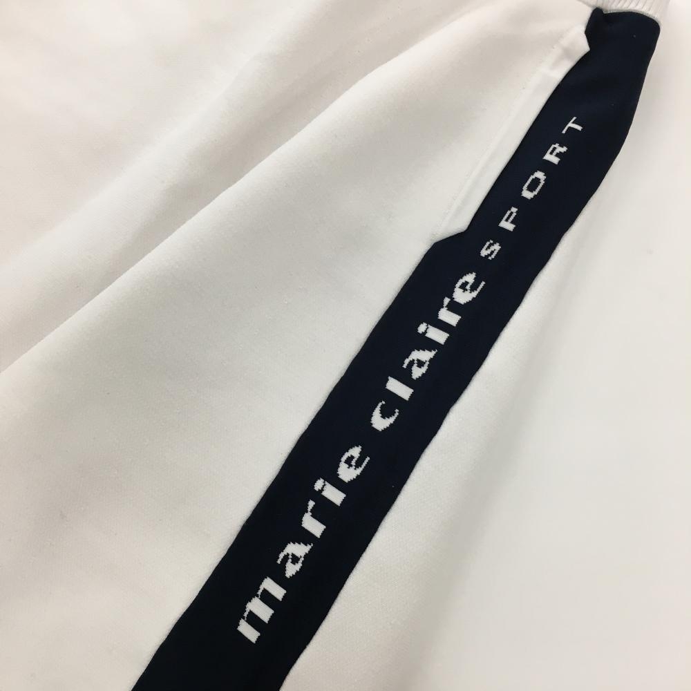 【美品】マリクレールスポール ニットスカート 白×ダークネイビー サイドロゴ 裏地付き レディース S ゴルフウェア marie claire